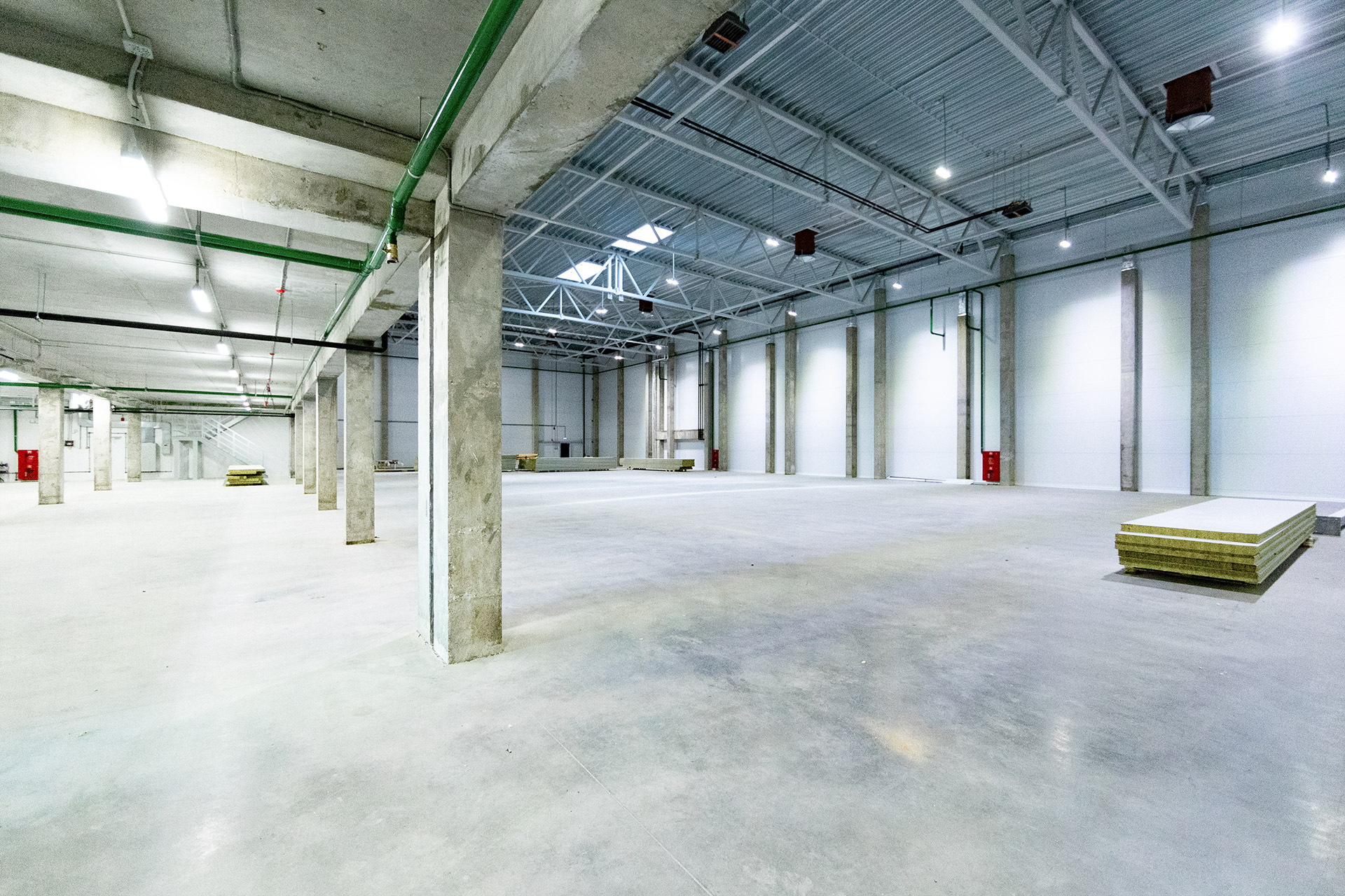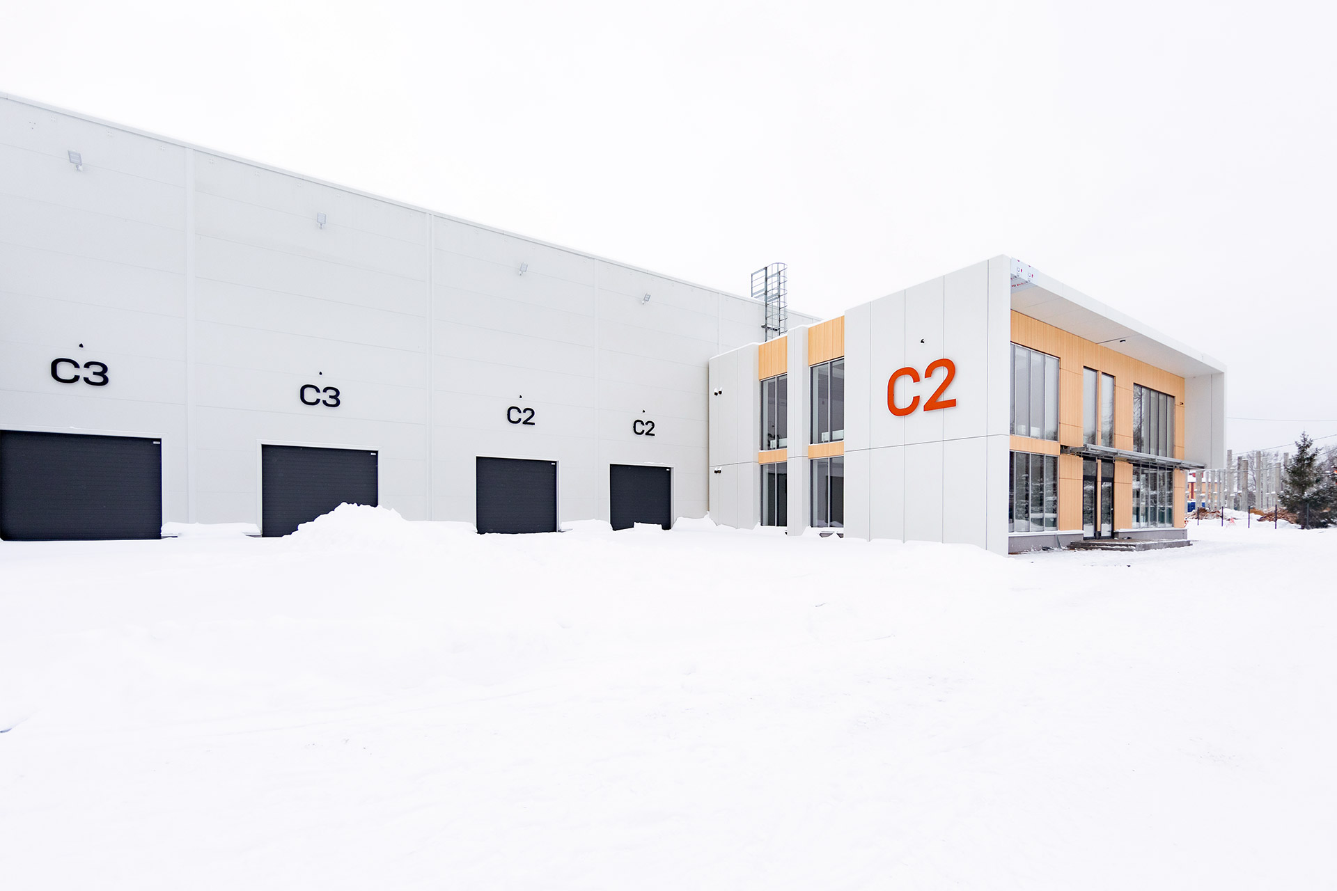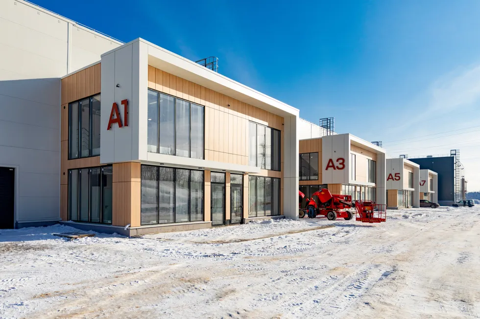Главное здание запроектировано из трех блоков, каждый из которых поделен на несколько отдельных секций со стеллажно-складскими и производственными зонами, погрузочными доками и двухуровневыми офисными помещениями с отдельными входами. Общее количество секций - 16. Общая площадь здания превысит 12 700 кв.м.