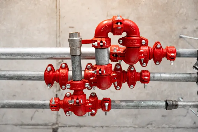 Цех масел: Монтаж труб системы АУПТ и профлиста на кровле.