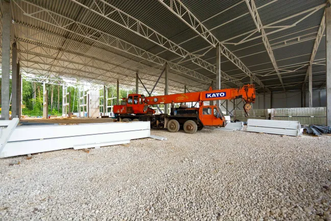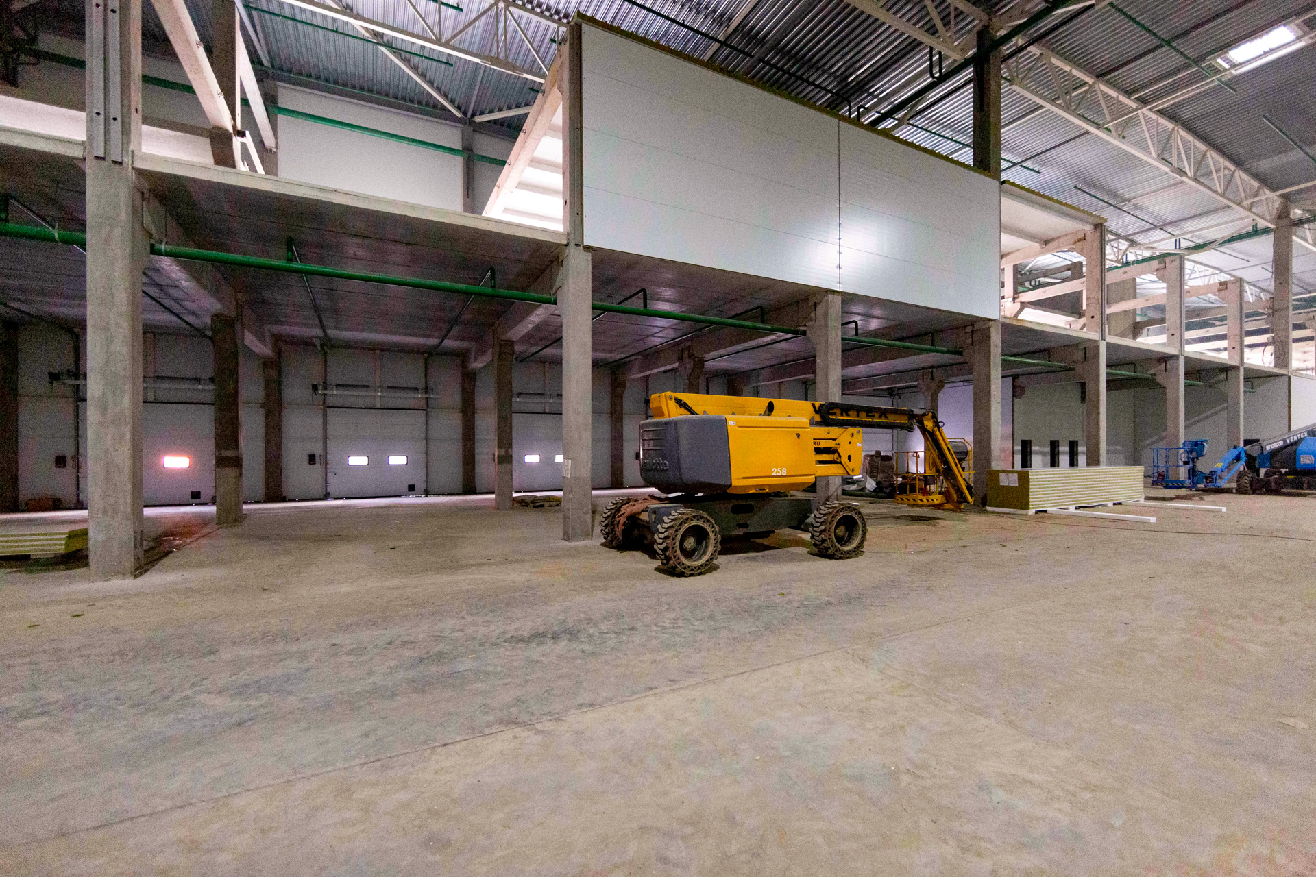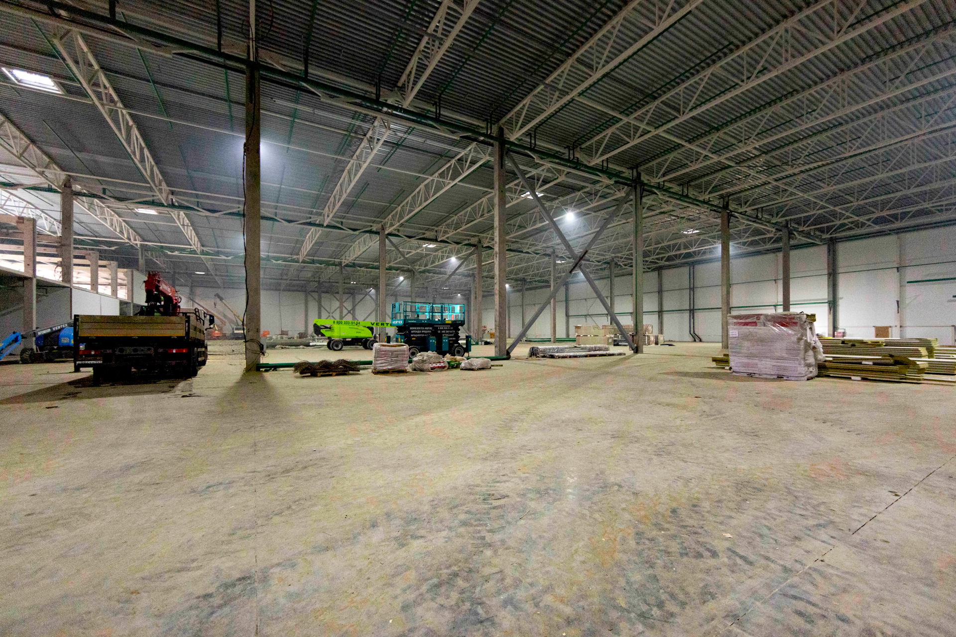Высота складской зоны до низа ферм 12 м, шаг колонн 12х24 м. Общая площадь 20 200 кв.м.