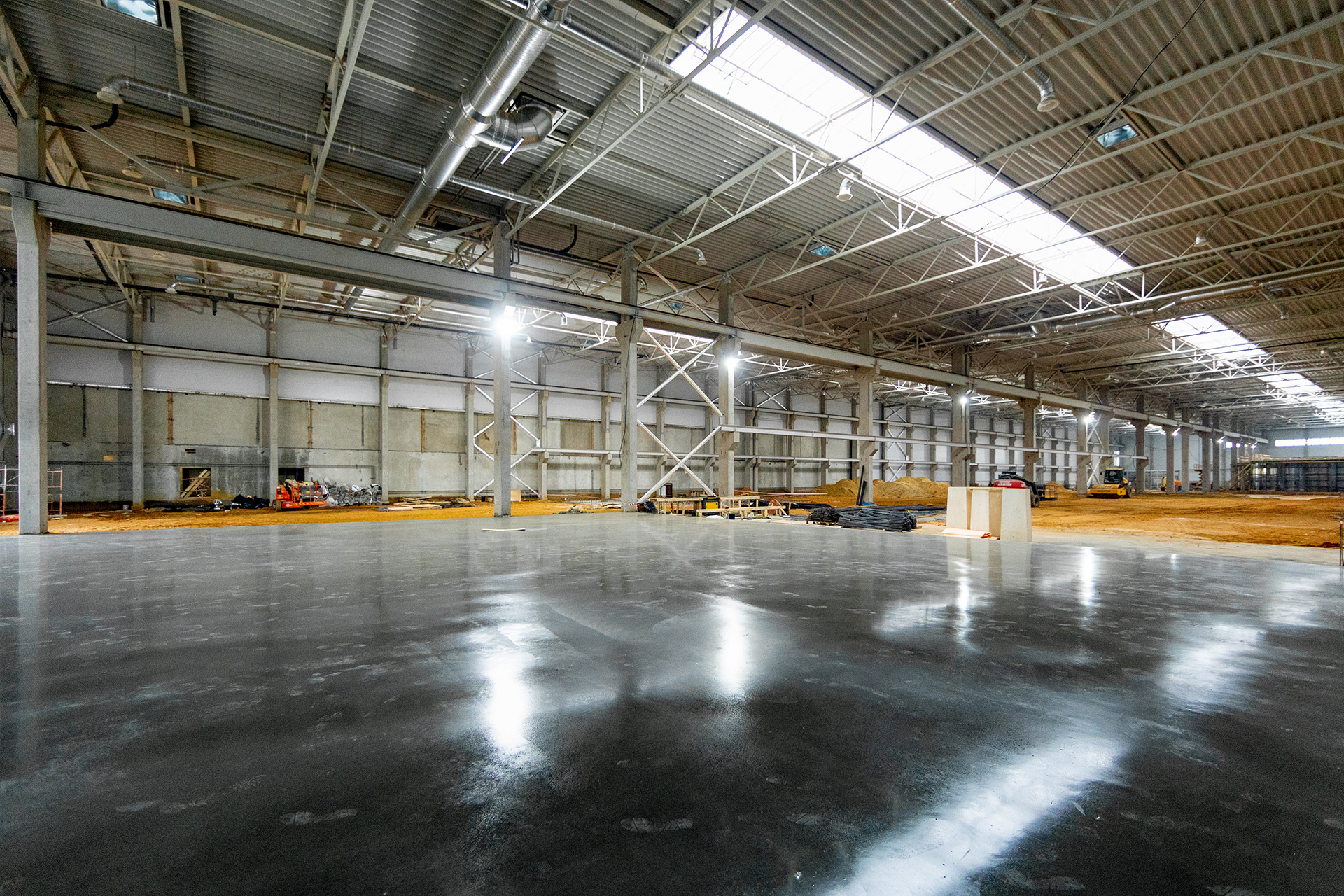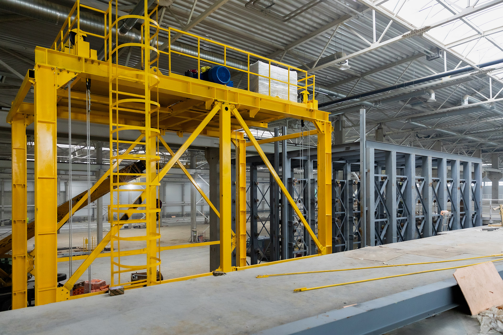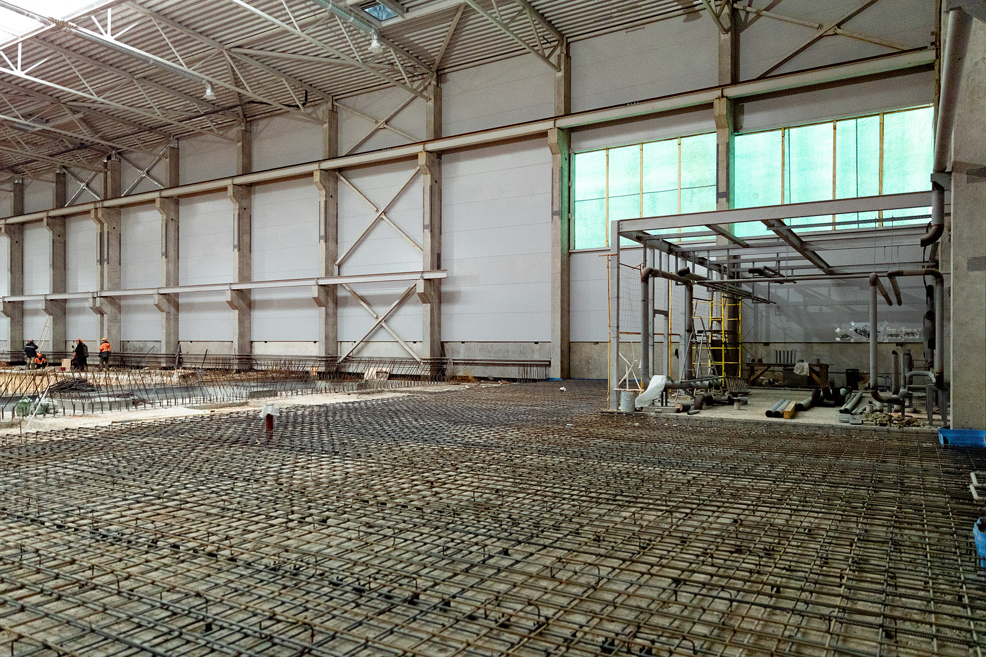 ГПК: Устройство пирога кровли, монтаж зенитных фонарей, аэраторов, кровельных воронок, вентиляционных установок на кровле, проходок под вентиляцию на кровле Монтаж окон, труб отопления и теплоснабжения, системы вентиляции, рельс и тормозных настилов на подкрановые балки.