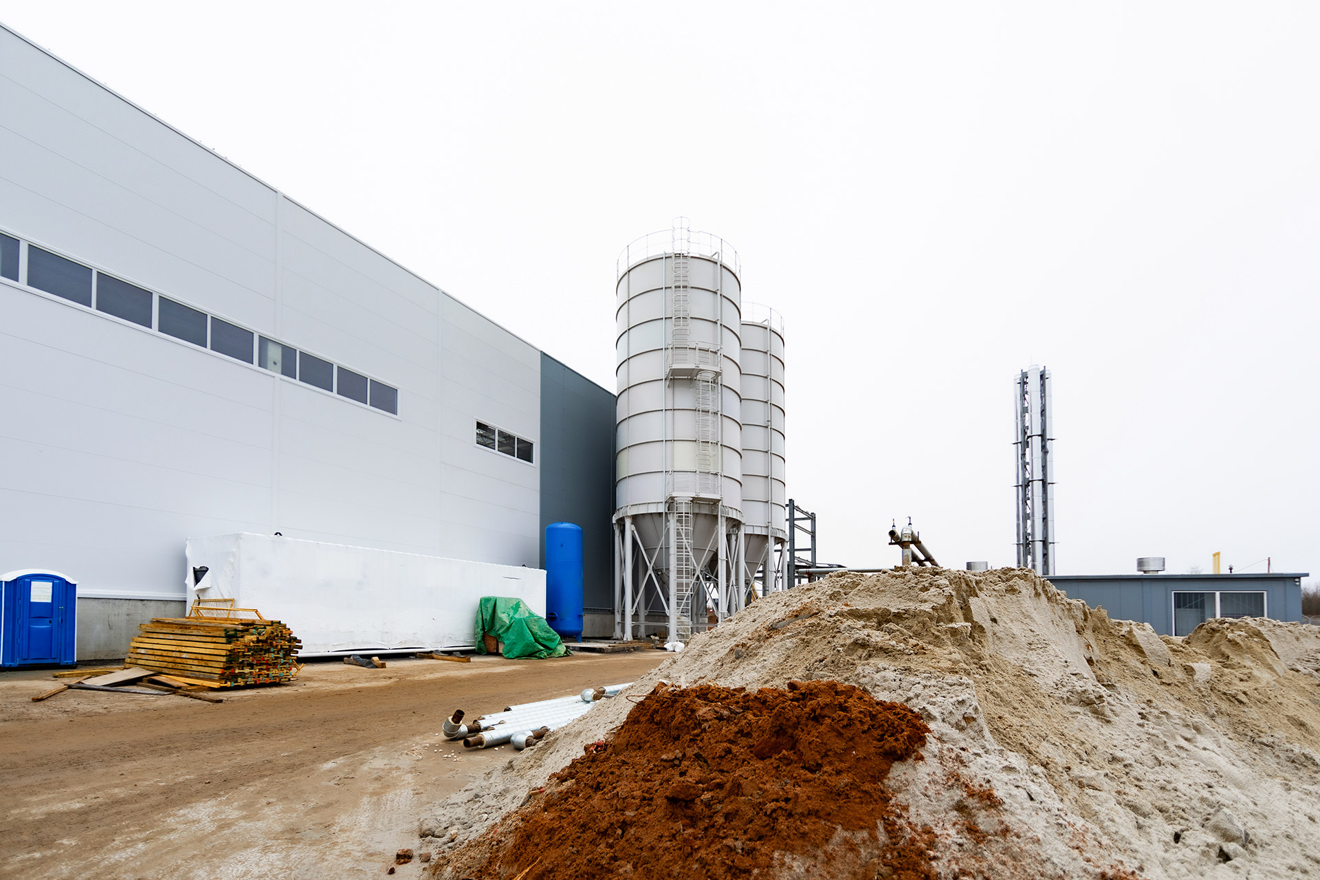 Проект предусматривает возведение главного производственного и административно-бытового корпусов, здания цеха изготовления гранулированной пеностеклокерамики, складов хранения сырья и домокомплектов, двух КПП и станции технического обслуживания транспорта. Общая площадь зданий составит около 27 370 кв.м.