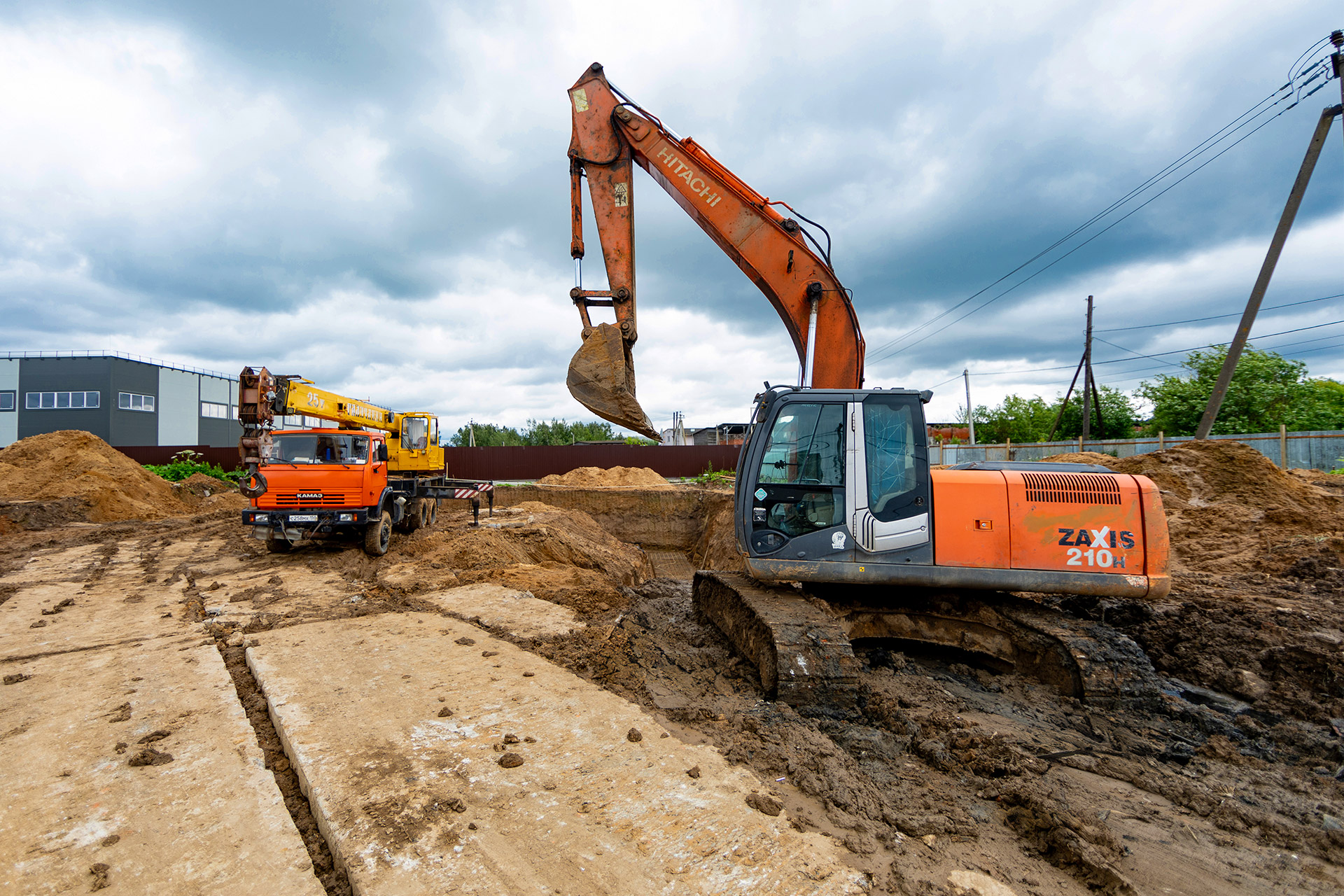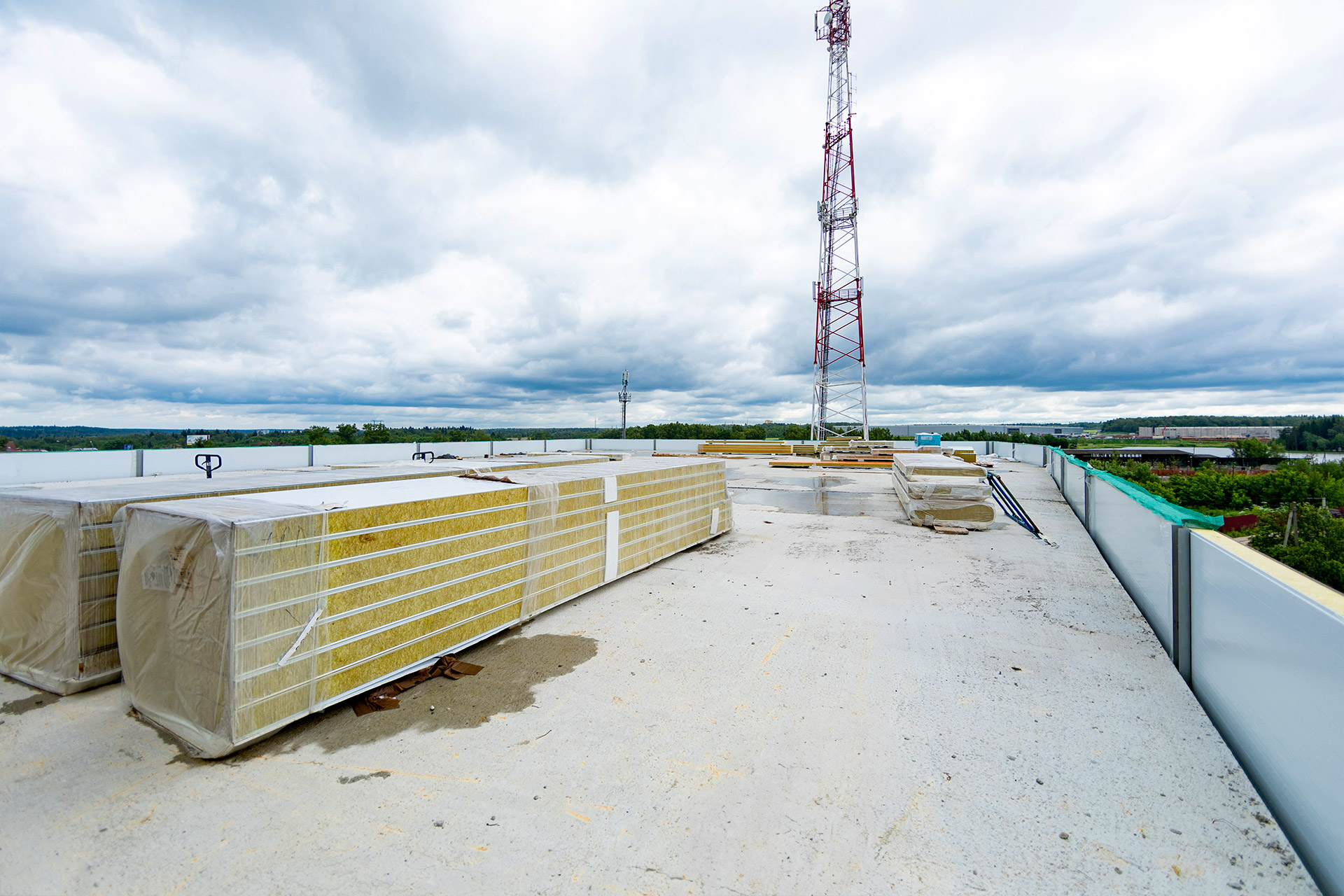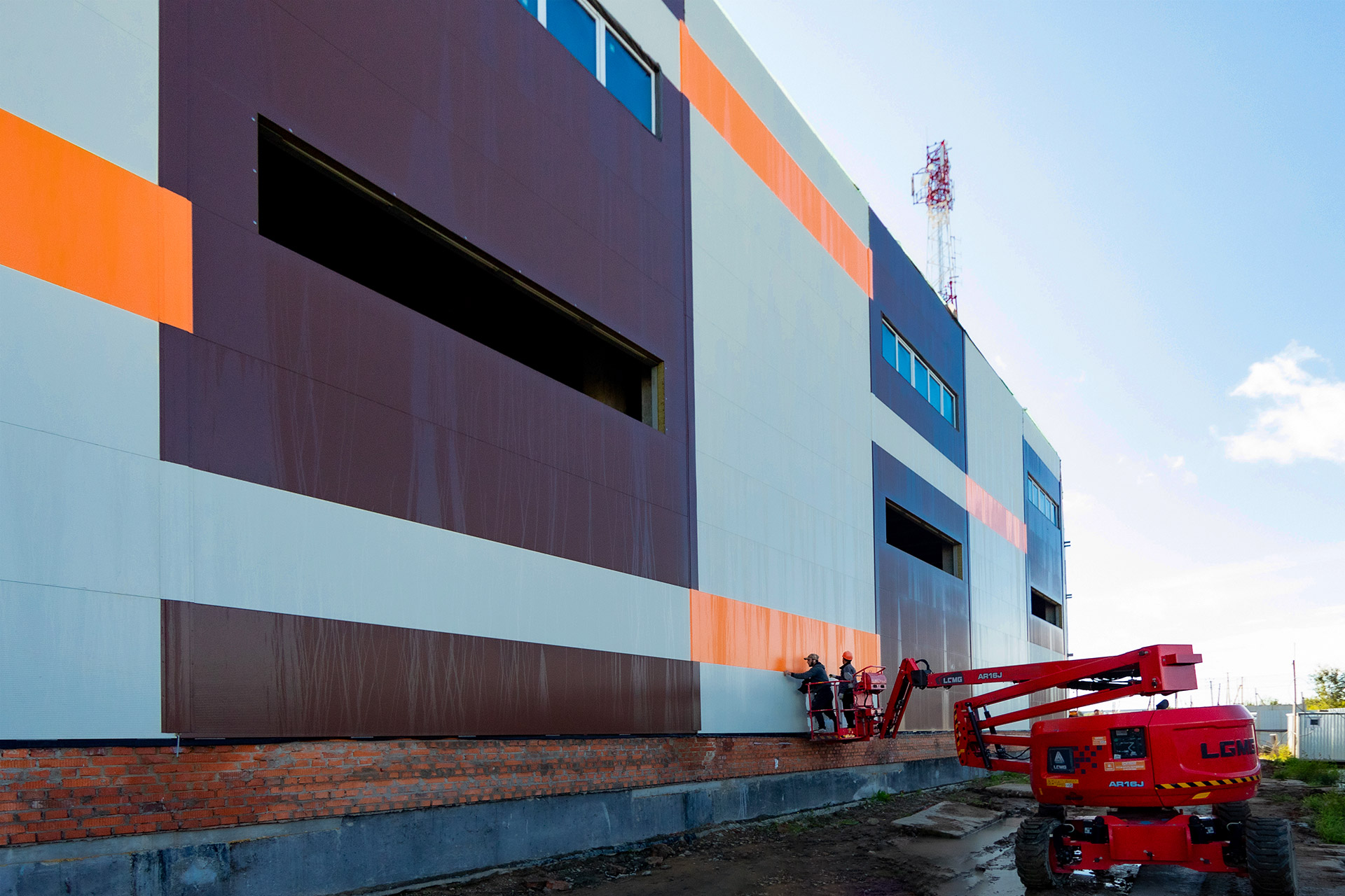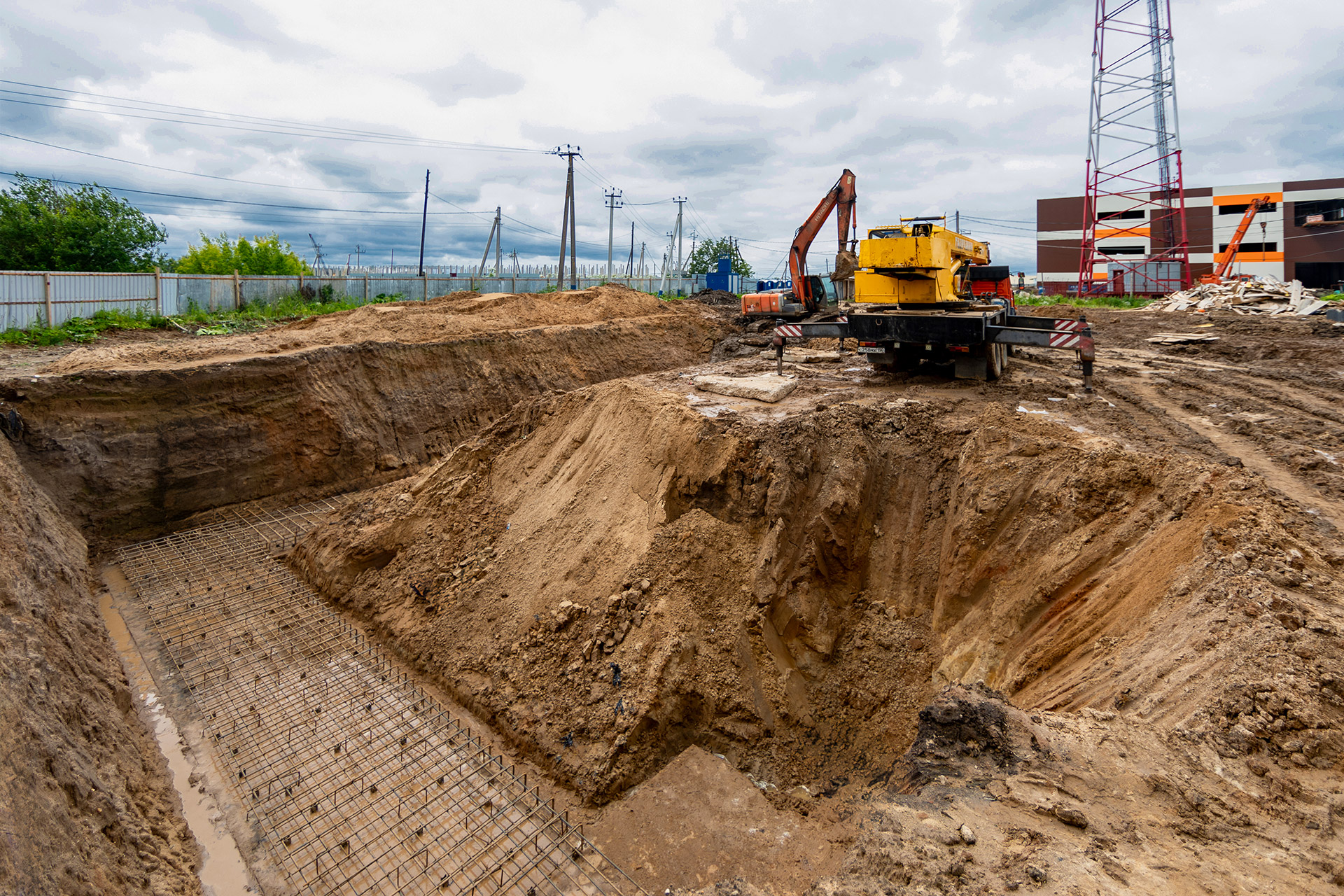 Монтаж стеновых сэндвич-панелей и нащельников. Возведение кирпичного парапета. Устройство кровельного пирога. Армирование, бетонирование и гидроизоляция подпорных стен пруда. Разработка котлована под резервуар пожаротушения. Кирпичная кладка стен котельной. Армирование и бетонирование плит пола и перекрытия котельной. Шлифовка бетонных поверхностей стен и перекрытий.