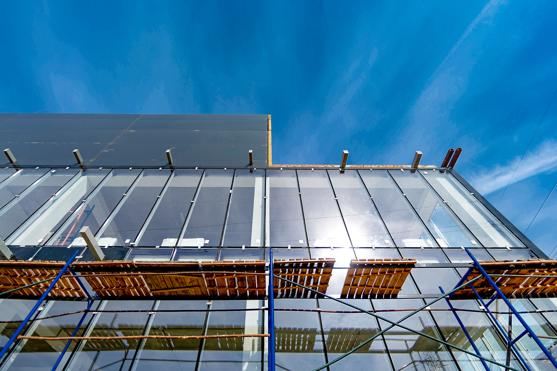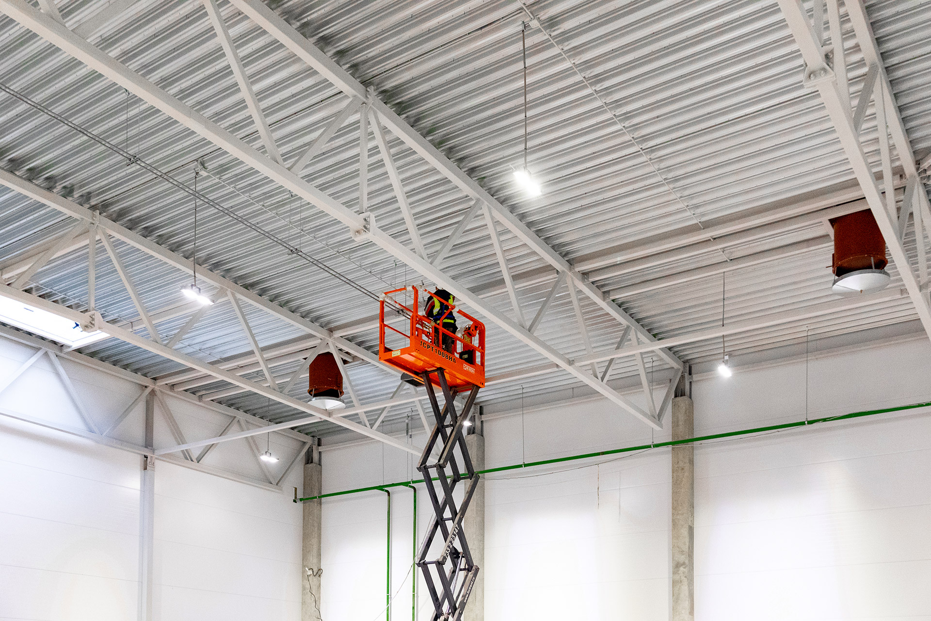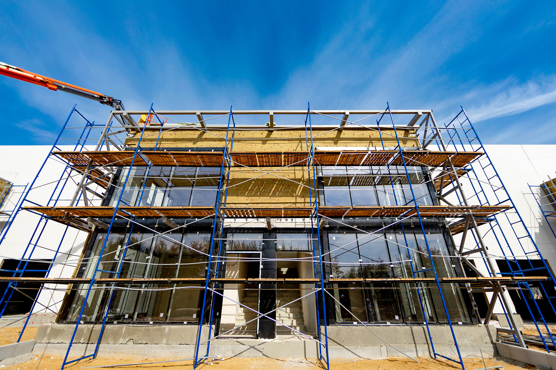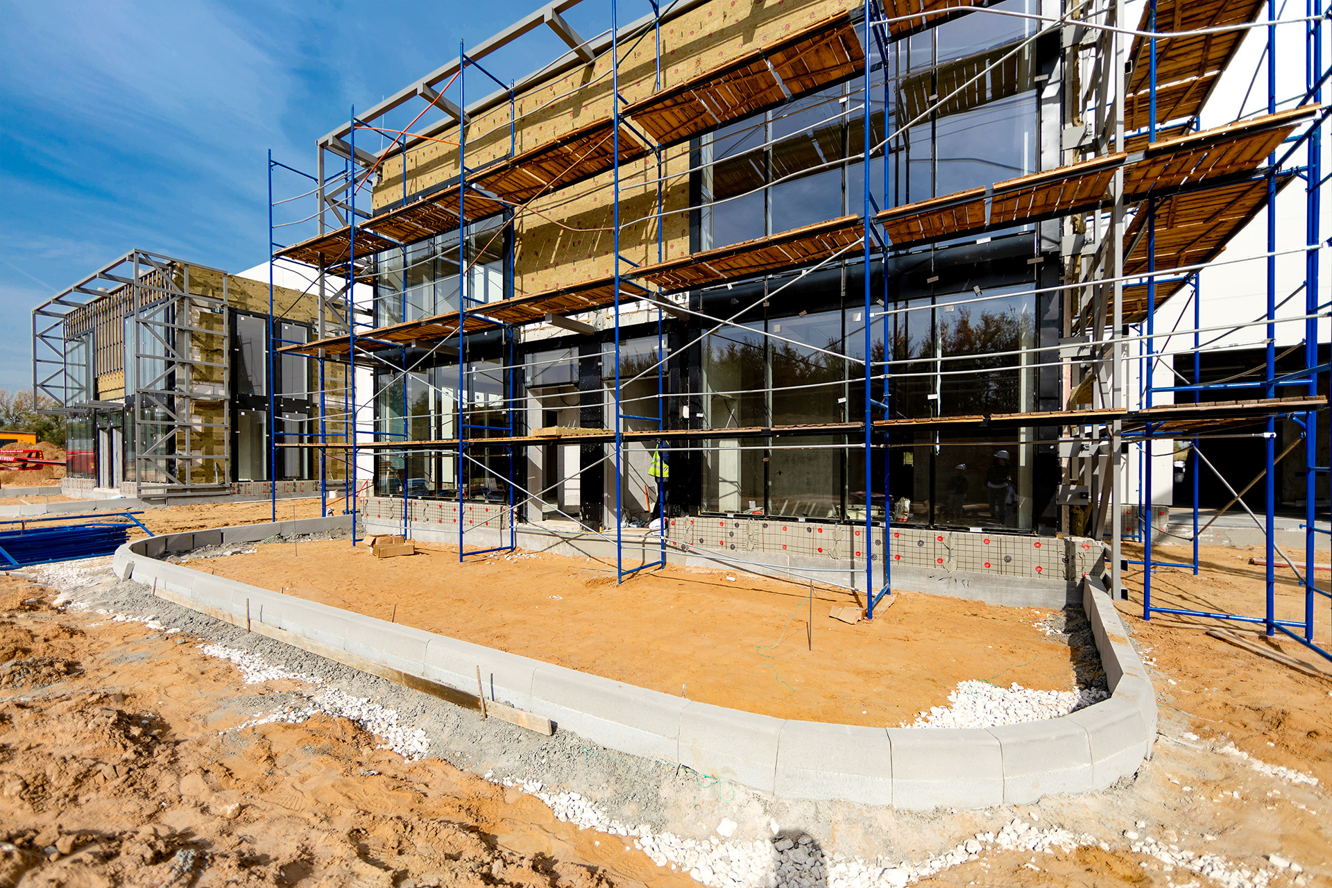 Блоки А Б С: Бетонирование плит пола, стяжки пола мезонинов, цокольной стены и оснований под доквеллеры. Монтаж металлоконструкций фасадов, сэндвич-панелей, ворот и витражей. Огнезащита на металлоконструкций. Устройство кровли. Возведение, штукатурка и шпаклевка газобетонных стен, укладка плитки. Монтаж систем отопления, водоснабжения, электроснабжения, освещения, канализации.