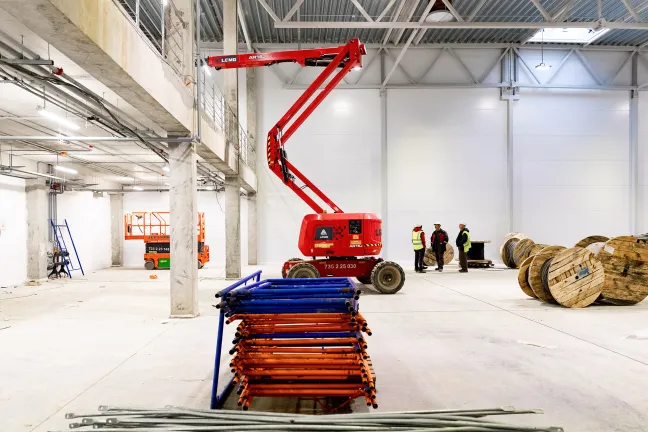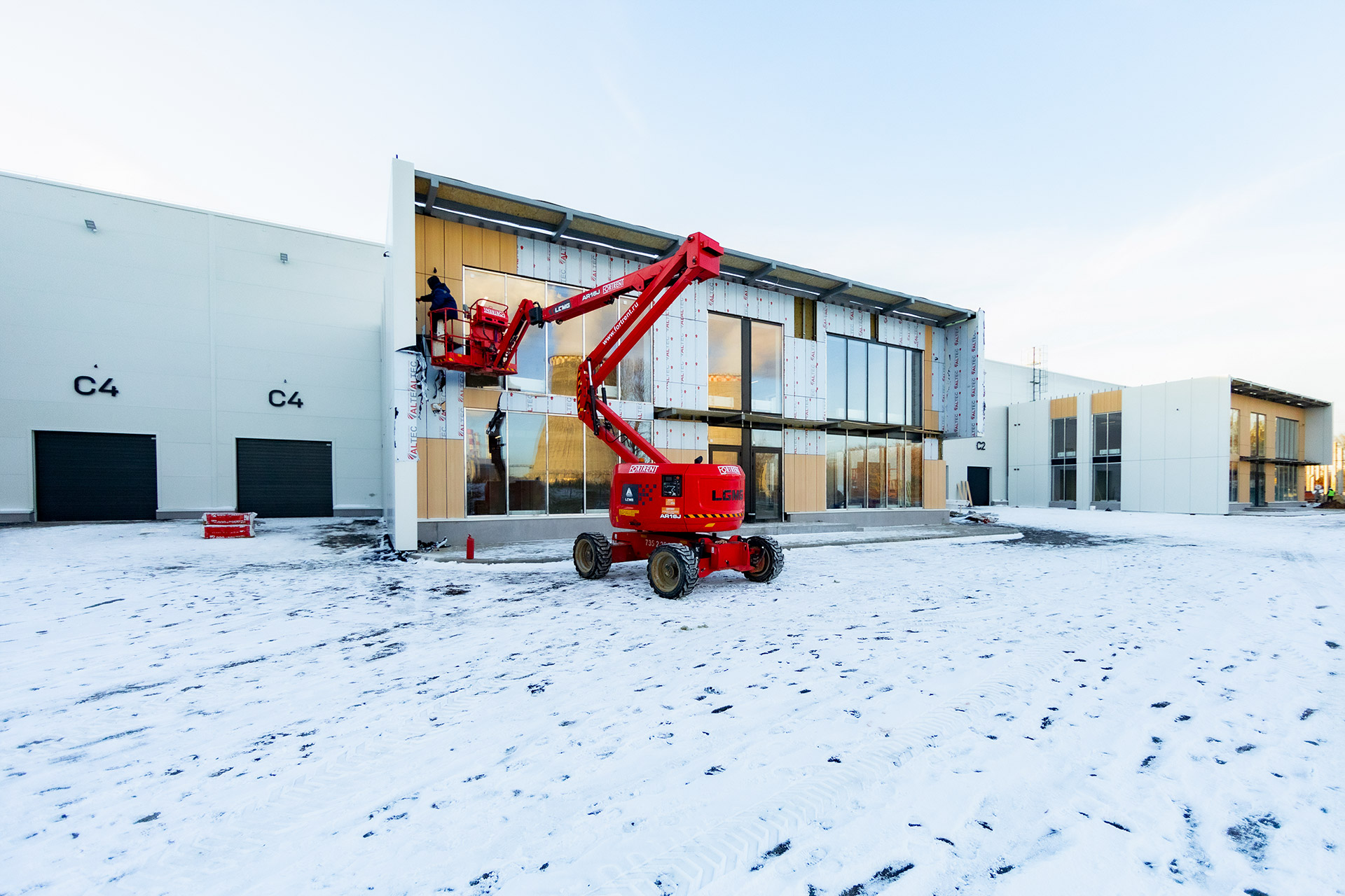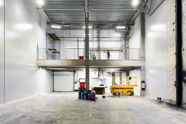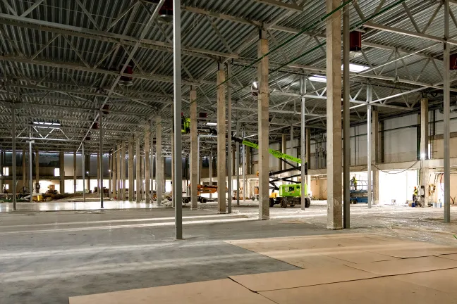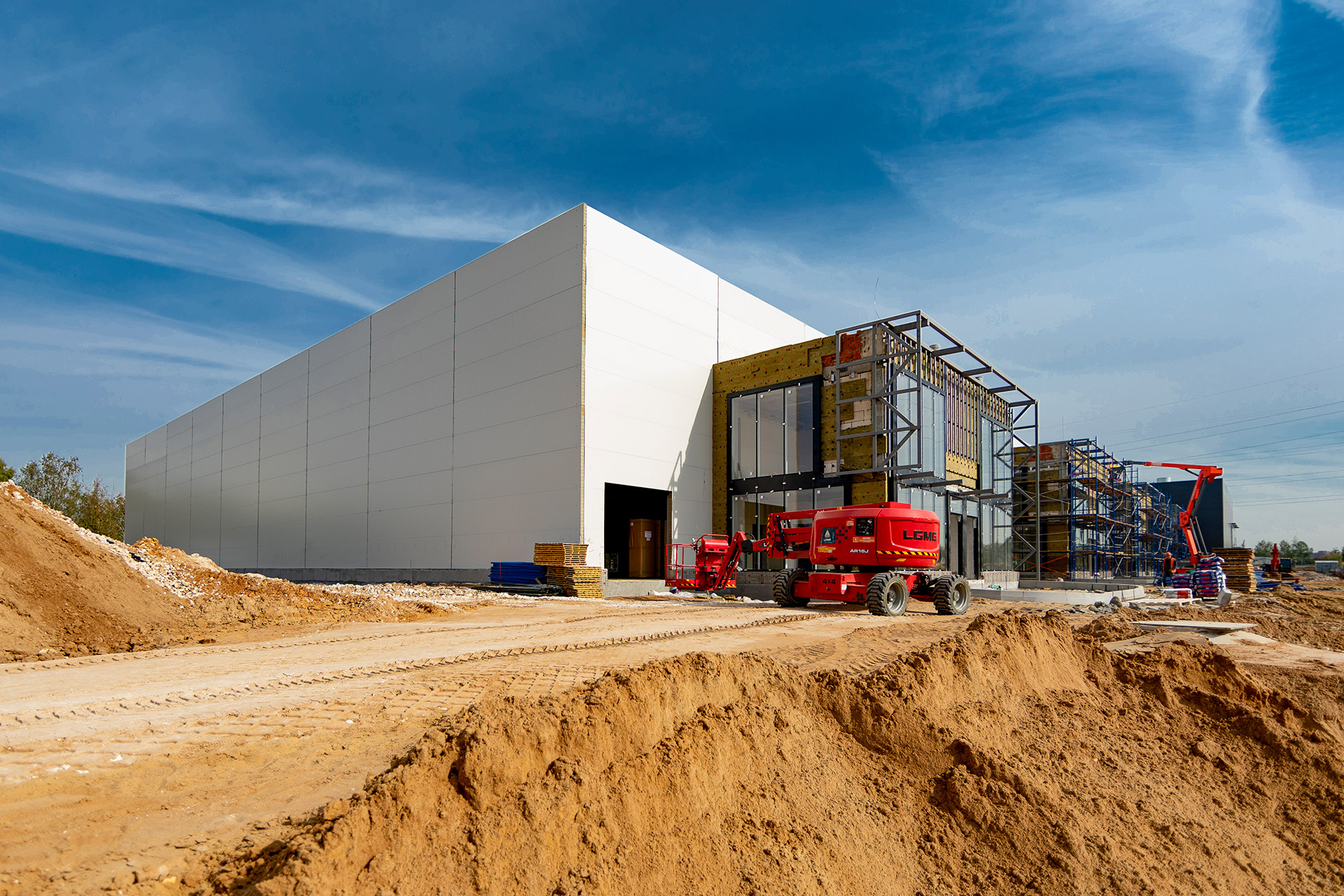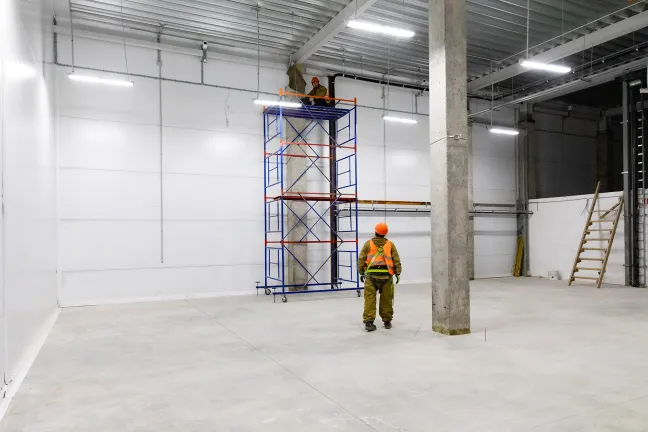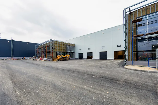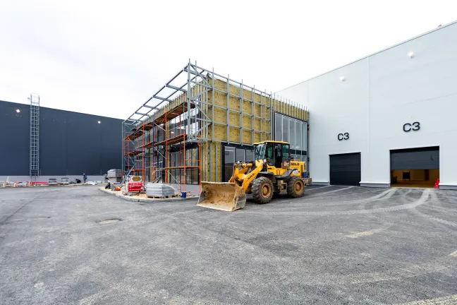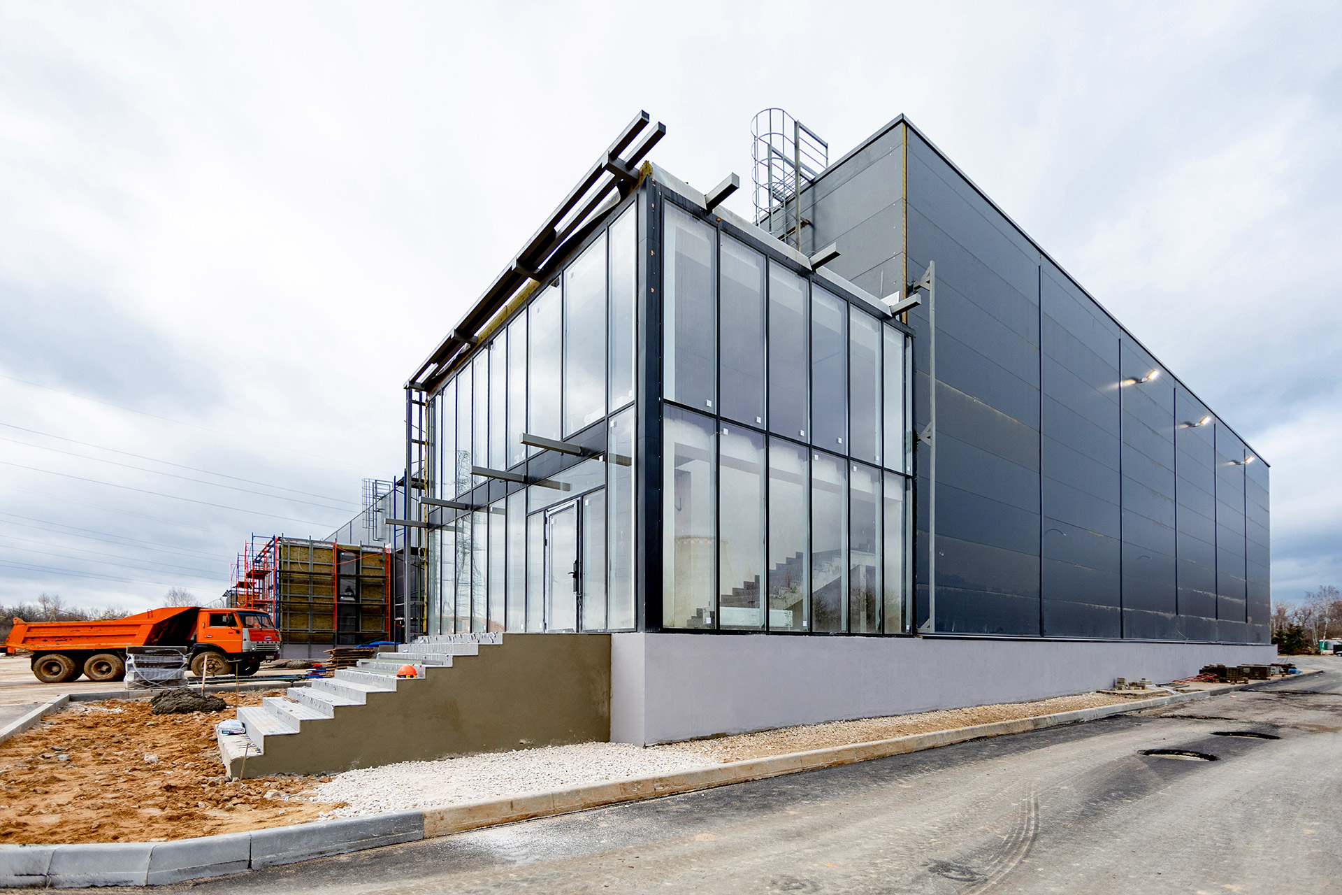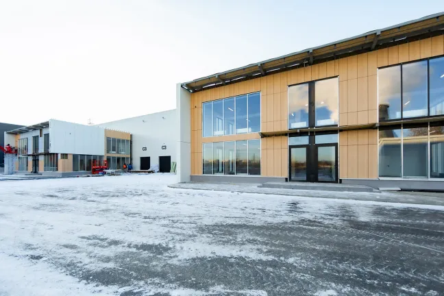 Главное здание запроектировано из трех блоков, каждый из которых поделен на несколько отдельных секций со стеллажно-складскими и производственными зонами, погрузочными доками и двухуровневыми офисными помещениями с отдельными входами. Общее количество секций - 16. Общая площадь здания превысит 12 700 кв.м.