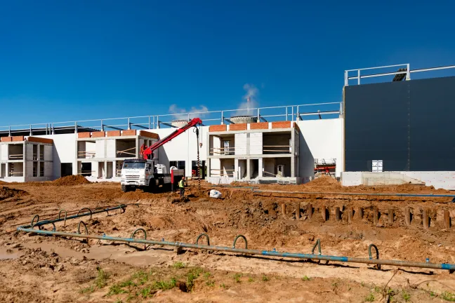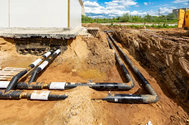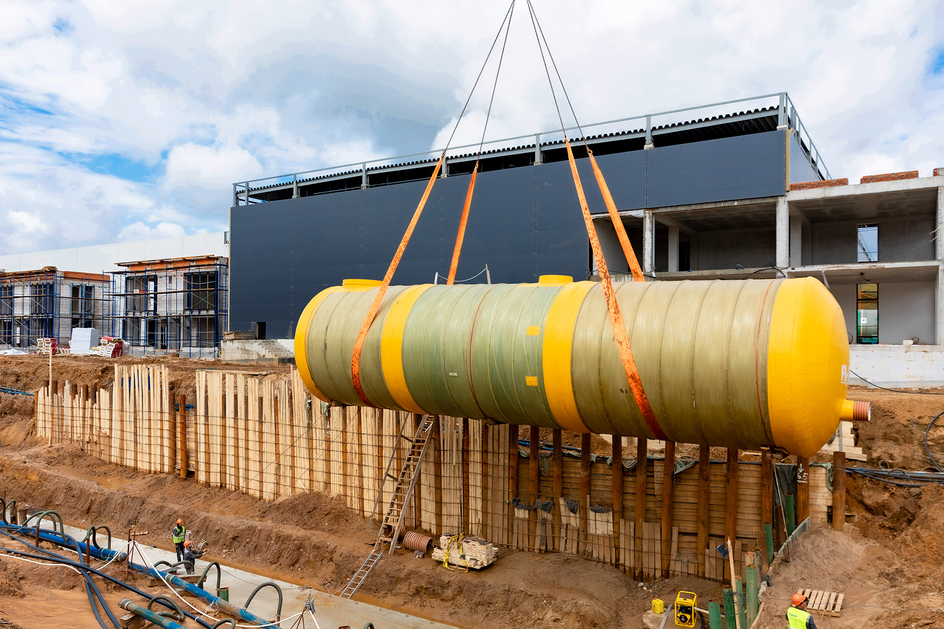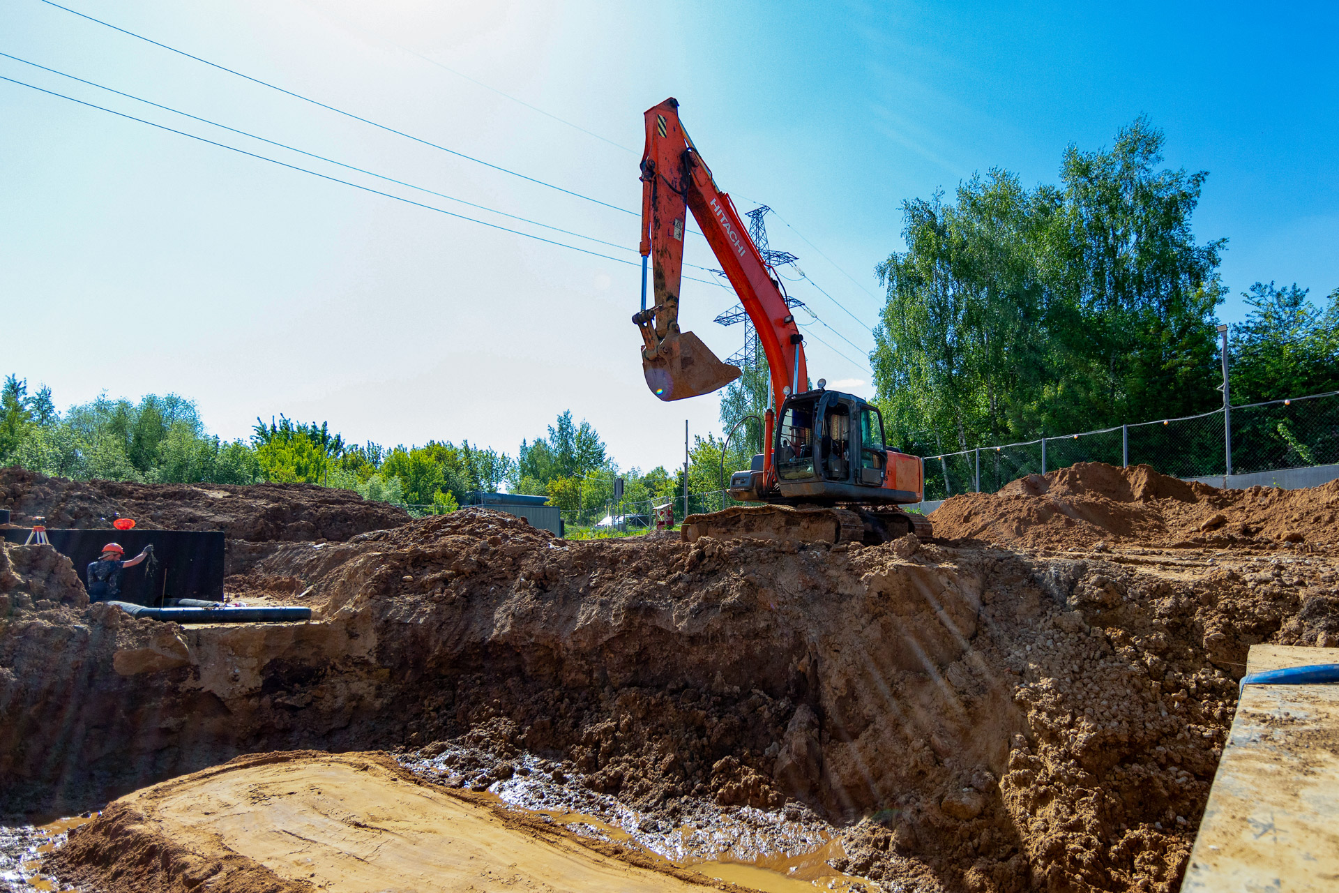 Инженерные сооружения: Водопонижение котлована под емкости ЛОС. Устройство водопроводных и канализационных сетей.