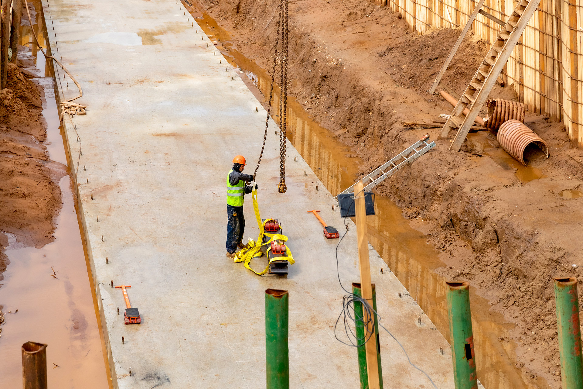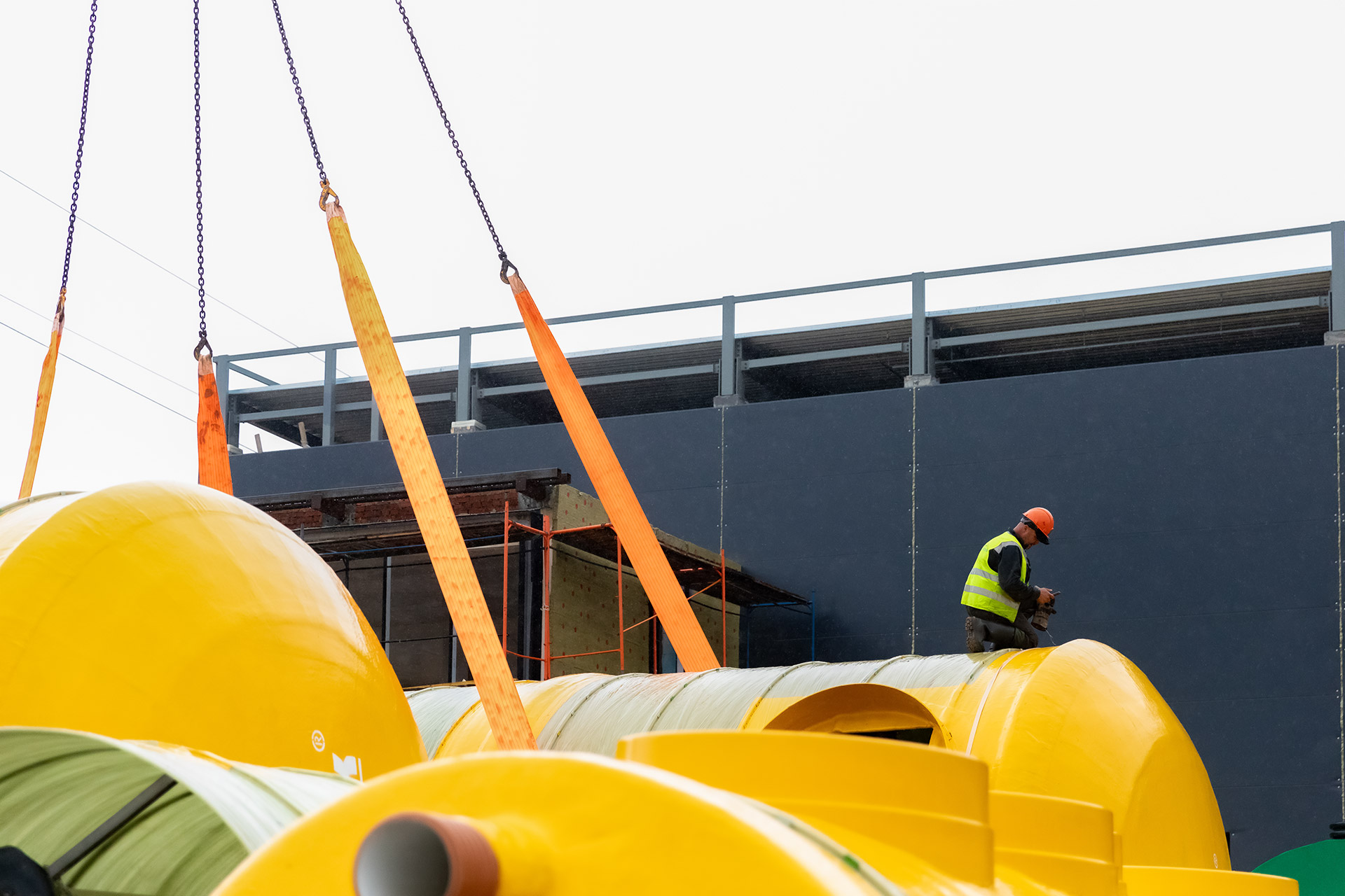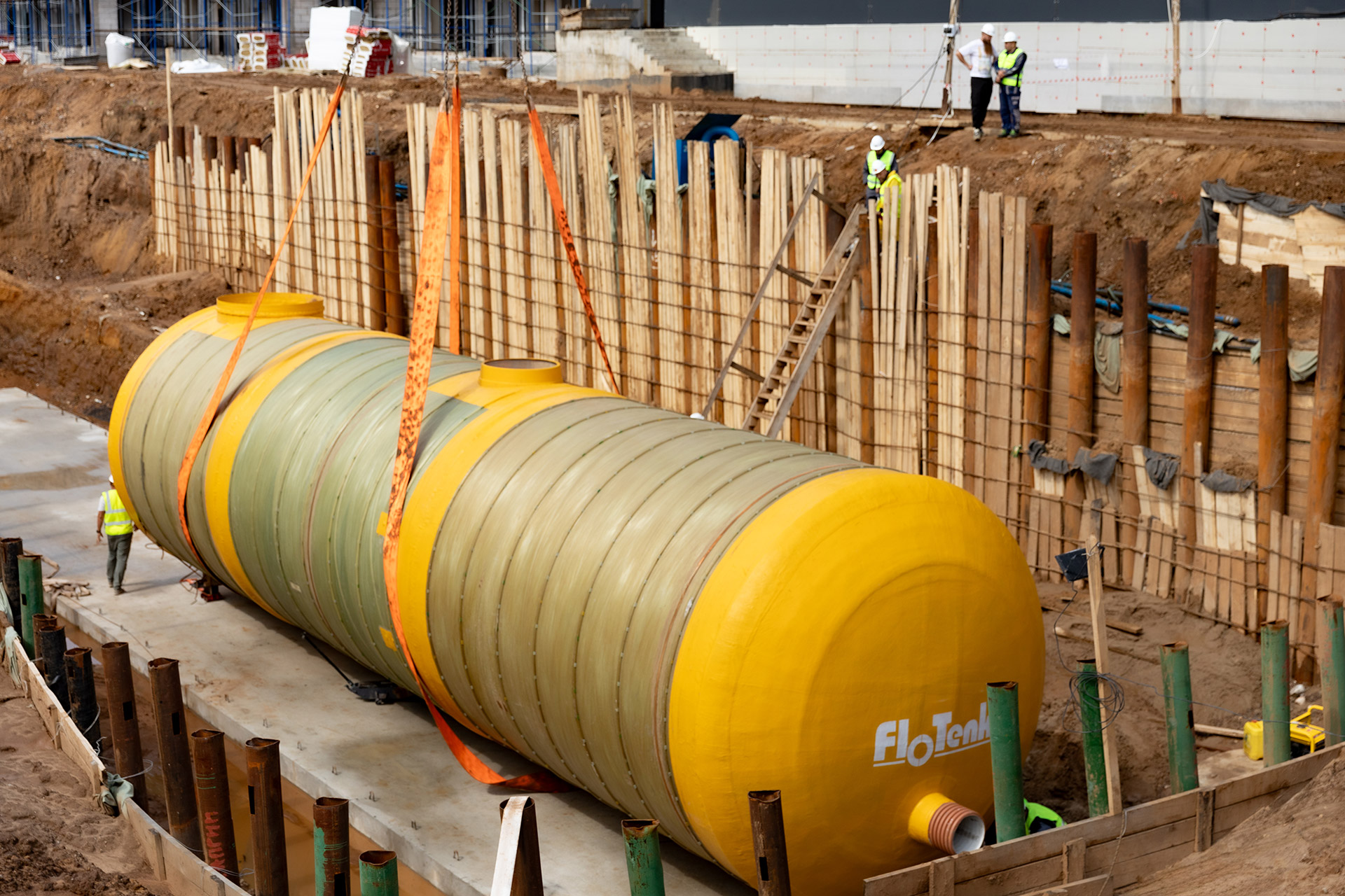 Инженерные сооружения: Водопонижение котлована под емкости ЛОС. Устройство водопроводных и канализационных сетей.