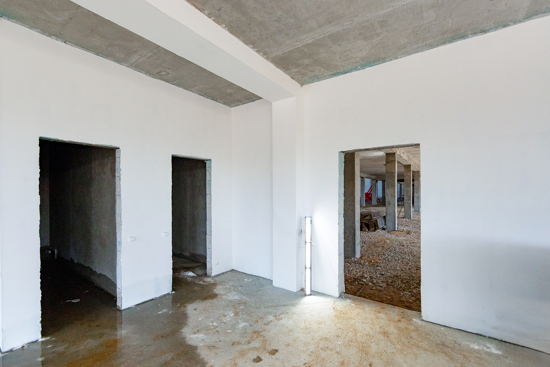 Блоки А Б С: Монтаж фасадных и витражных конструкций, люков дымоудаления, труб отопления, ГВС и ХВС. Устройство кровельного пирога. Штукатурка стен, колонн и балок. Укладка сухой, полусухой стяжки пола.