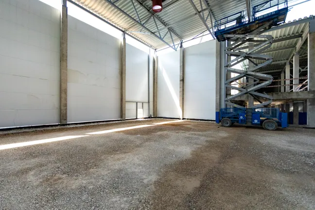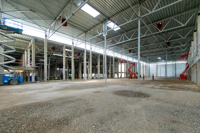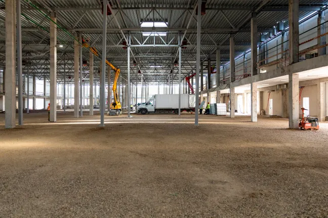 Главное здание запроектировано из трех блоков, каждый из которых поделен на несколько отдельных секций со стеллажно-складскими и производственными зонами, погрузочными доками и двухуровневыми офисными помещениями с отдельными входами. Общее количество секций - 16. Общая площадь здания превысит 12 700 кв.м.