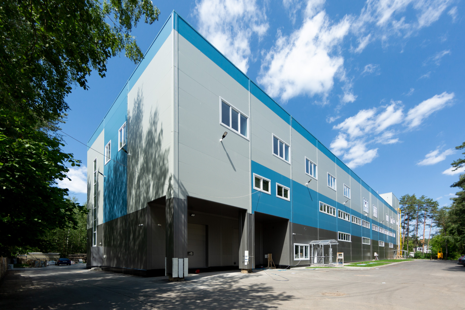 Главное здание 3-этажное с монолитным ж/б каркасом. Наружные стены выполнены из сэндвич панелей с минераловатным утеплителем толщиной 200 мм. Размер здания 78х19,5 м, высота по парапету кровли 20,85 м. Первый этаж выделен под складские зоны, инженерно-технические и административные помещения. На втором этаже находятся помещения для персонала, лаборатория и производственные помещения. На 3-м этаже расположены административно-технические помещения.