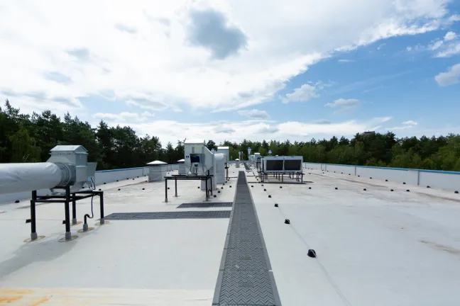 Комплекс оборудован системами комбинированного отопления (воздушного и водяного), кондиционирования, разделенному по функциональному признаку системами вентиляции и очистки воздуха, установками подготовки чистой воды и сжатого воздуха, холодо- и водоснабжения, тремя системами водоотведения (хозяйственно-бытовой, ливневой и производственной), системой очистки производственных стоков, системами противопожарной безопасности.