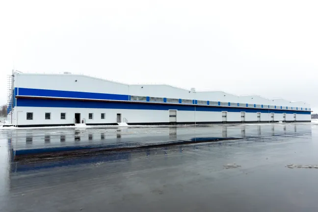 Складской корпус одноэтажный. Состоит из зон напольного и стеллажного хранения, встроенных административно-бытовых и технических помещений. В кровельном покрытии предусмотрены зенитные фонари. Размеры корпуса 145 х 96 м, общая площадь 14 099 м².