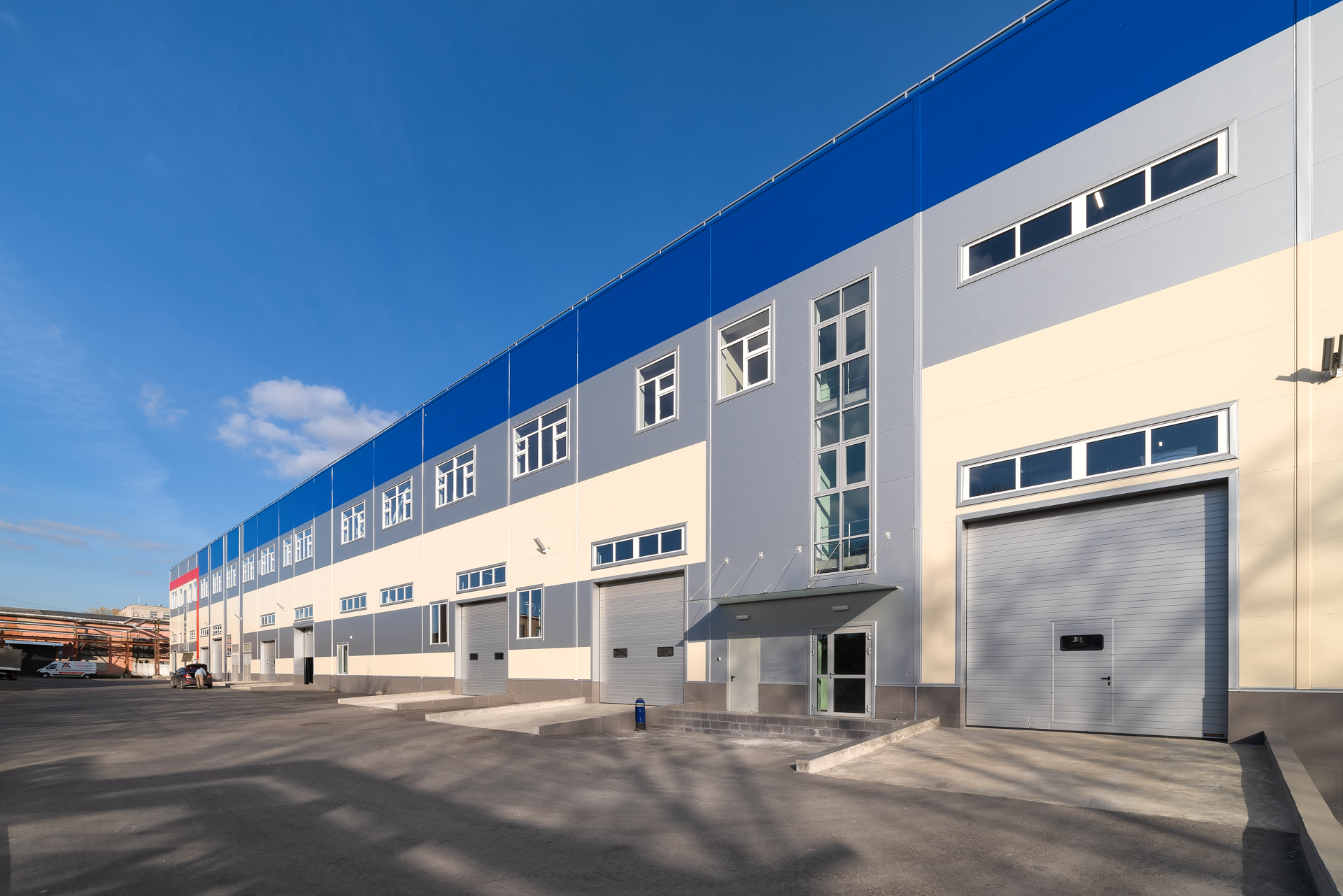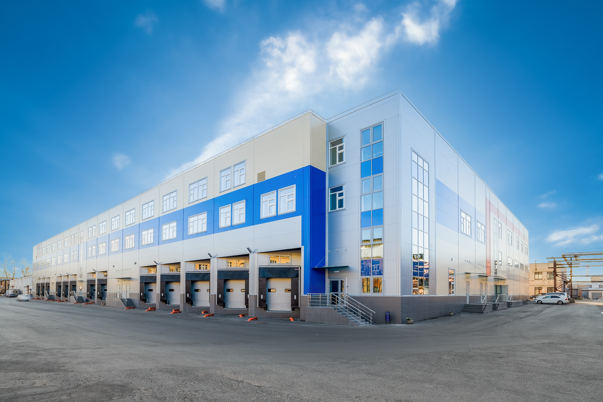 Для решения этой задачи компания ПСО-13 построила в 2019 году трёхэтажный многофункциональное здание класса Light Industrial с погрузочно-разгрузочными доками и отдельными входами, которое объединяющет под одной крышей все необходимые помещения.
