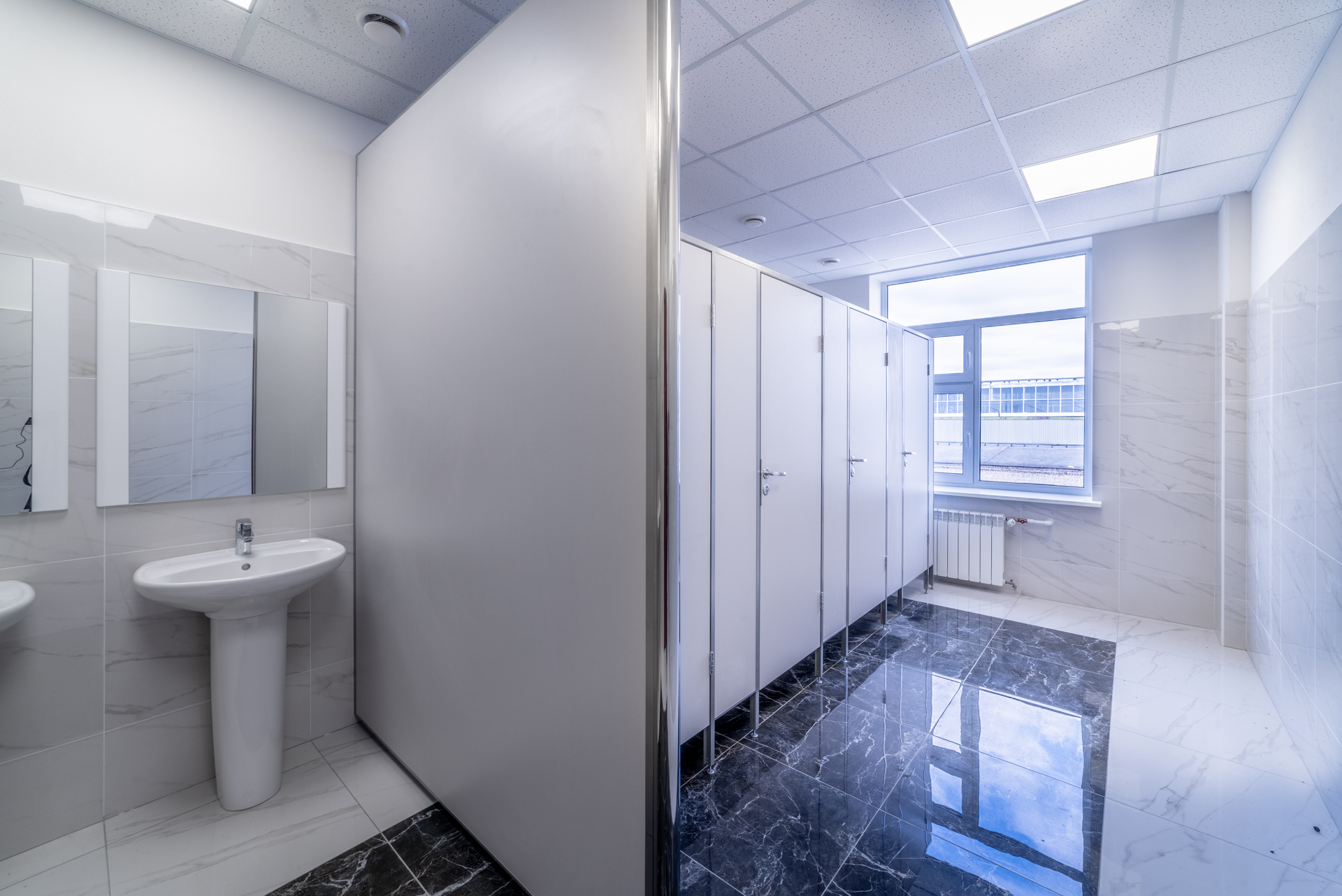 На первом этаже размещены производственно-складские помещения, оборудованные собственными погрузочно-разгрузочными доками, и камера объемом 75 м² для климатических испытаний.
