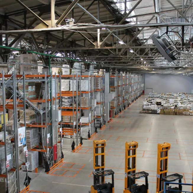 Склад площадью 9 997 м² оборудован десятью автоматическими воротами докового типа с доквеллерами. Хранение грузов осуществляется на шестиярусных фронтальных стеллажах двойной глубины вместимостью 24 174 паллетомест. Высота стеллажей – 10, 3 метров.