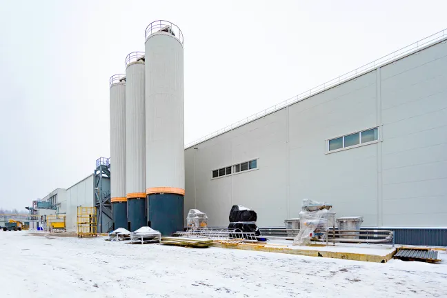Кроме главного здания на территории будут построены силосы для хранения сырья, автономная дизель-генераторная установка, трансформаторная подстанция и очистные сооружения, а также инженерные сети и коммуникации: