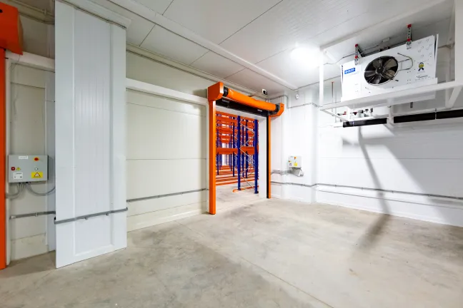 Промышленный холодильник размерами 48,0х72,0 м и высотой 16,5 м примыкает к зоне экспедиции с 6 транспортными доками, оборудованными докшелтерами и быстроподъемными воротами.