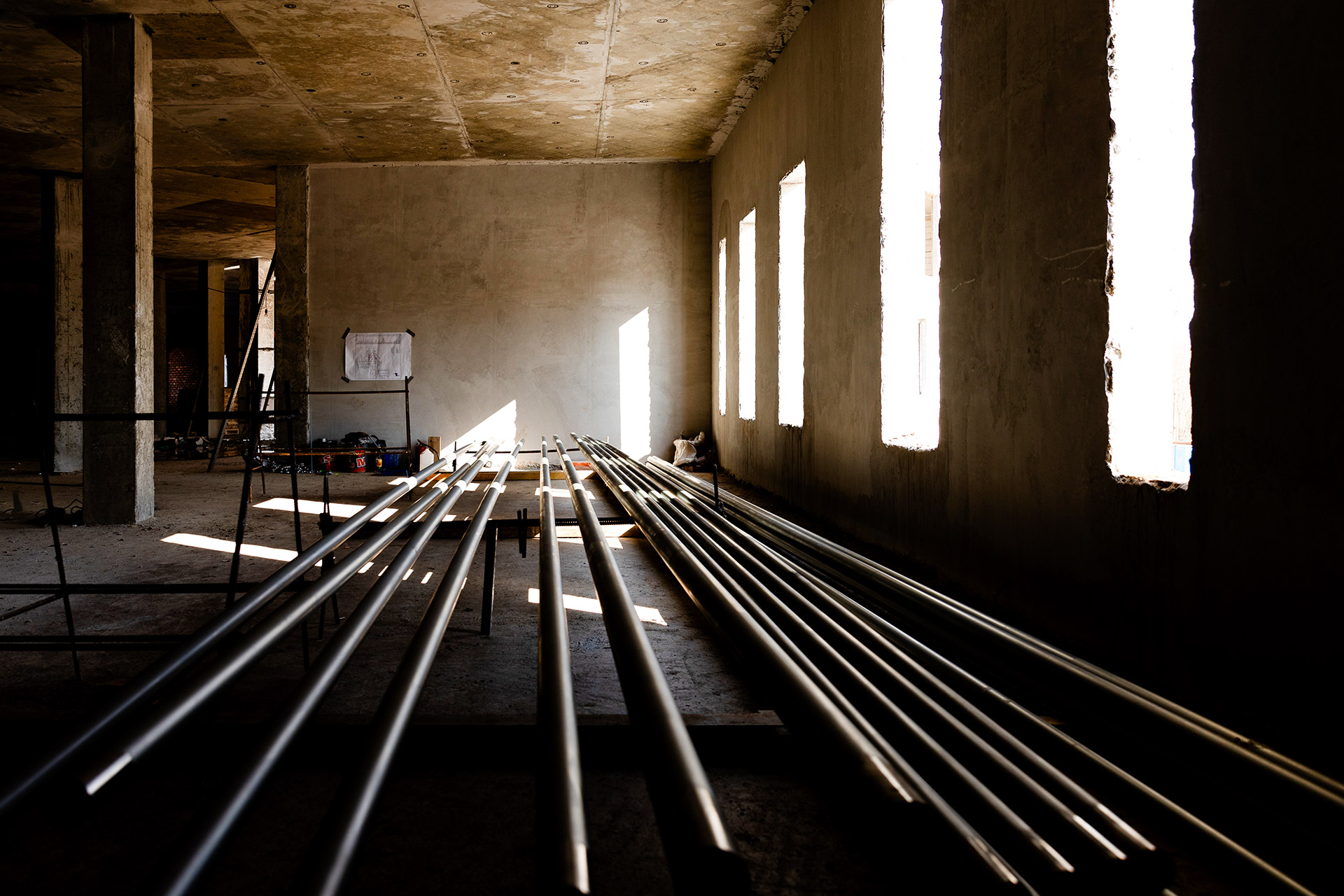 Реконструируемый административный корпус двухэтажный. Габариты здания 50м х 16м, высота 11,4м. В нем разместятся офисные помещения, конференц-зал, служебные, складские и технические помещения.