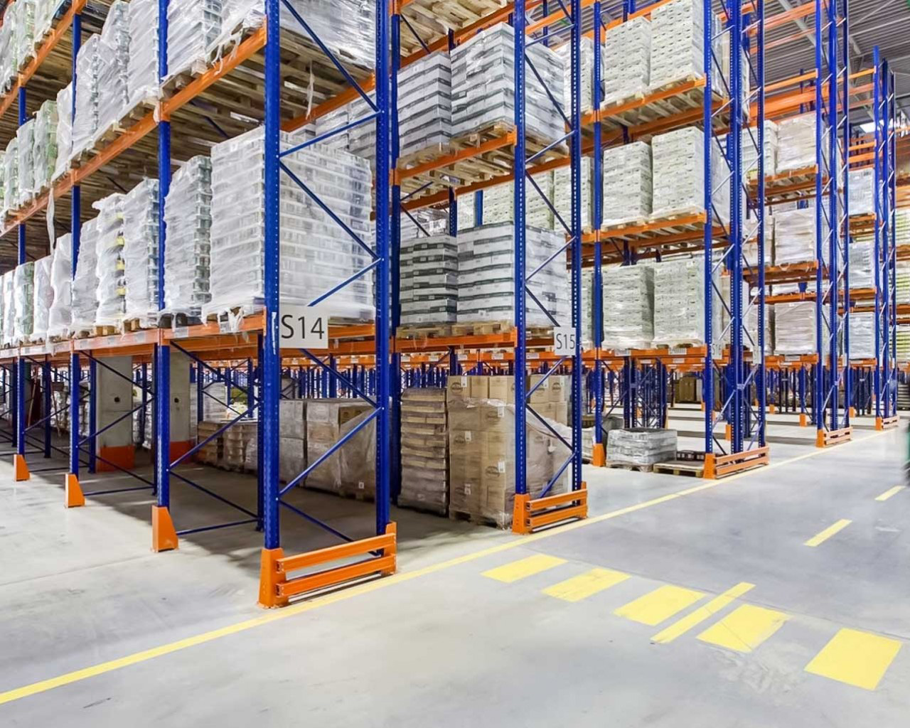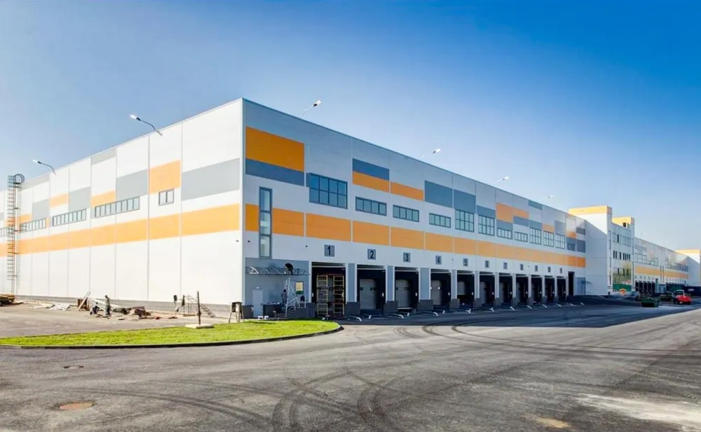 Складская зона одноэтажная, со встроенным мезонином, зоной погрузки/разгрузки и зоной высокостеллажного хранения. Оборудована оконными проемами для естественного освещения. Высота до низа ферм 12 м.