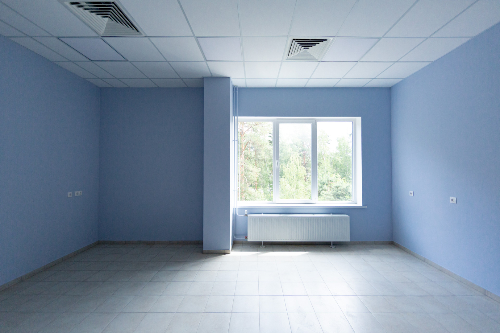 Перегородки для чистых помещений выполнены из собранных в стык сэндвич-панелей с герметичными соединениями и специальными скругляющими элементами. Полы из антистатического линолеума. Фильтры очистки воздуха и светильники встроены в потолочные панели заподлицо с внутренней поверхностью. Инженерные коммуникации размещены за подвесным потолком с возможностью обслуживания. Неоткрываемые окна выполнены заподлицо с поверхностью перегородок.
