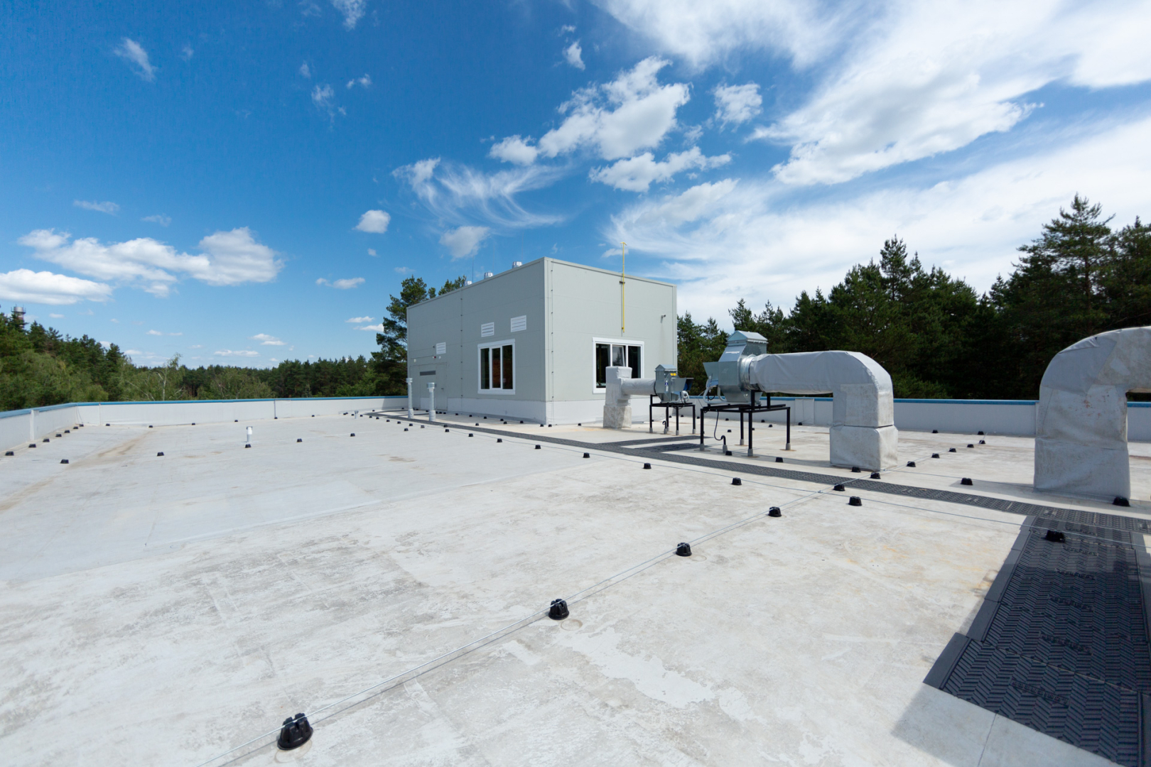 Комплекс оборудован системами комбинированного отопления (воздушного и водяного), кондиционирования, разделенному по функциональному признаку системами вентиляции и очистки воздуха, установками подготовки чистой воды и сжатого воздуха, холодо- и водоснабжения, тремя системами водоотведения (хозяйственно-бытовой, ливневой и производственной), системой очистки производственных стоков, системами противопожарной безопасности.