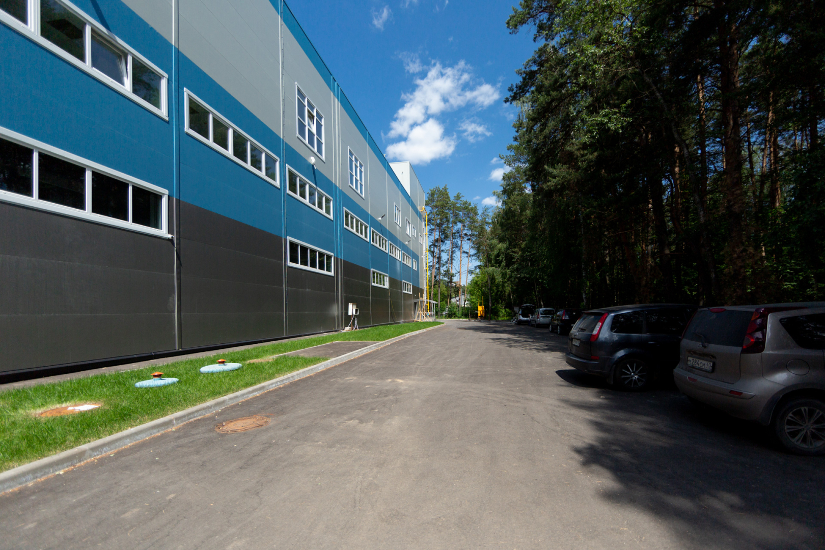 Главное здание 3-этажное с монолитным ж/б каркасом. Наружные стены выполнены из сэндвич панелей с минераловатным утеплителем толщиной 200 мм. Размер здания 78х19,5 м, высота по парапету кровли 20,85 м. Первый этаж выделен под складские зоны, инженерно-технические и административные помещения. На втором этаже находятся помещения для персонала, лаборатория и производственные помещения. На 3-м этаже расположены административно-технические помещения.