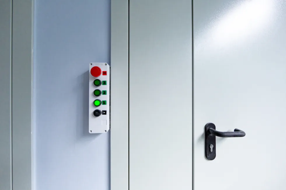 Помещения с избыточным давлением воздуха оборудованы дверями с уплотнением и доводчиками с фиксацией открытого положения. В воздушных шлюзах предусмотрена блокировка от одновременного открывания двух дверей шлюза.