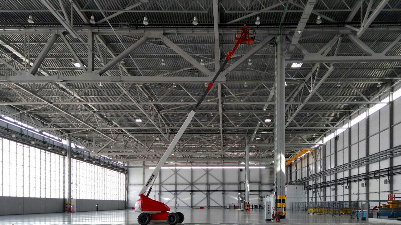 Большая площадь двойного остекления ангара и комбинированное воздушное-водяное отопление обеспечивает комфортные условия для работы персонала и хорошую энергоэффективность здания.