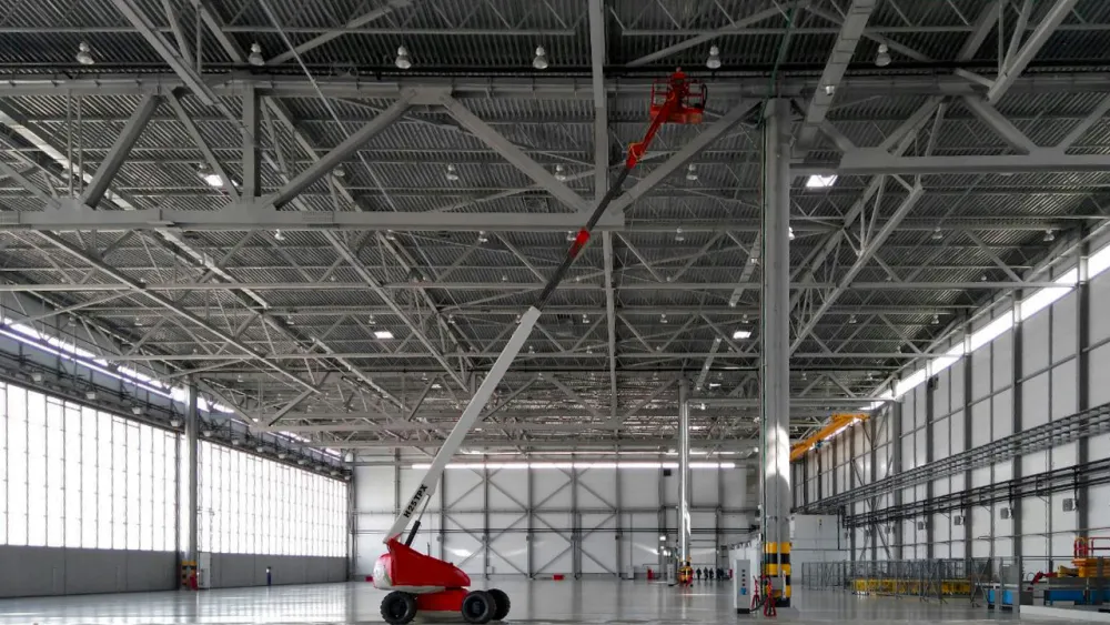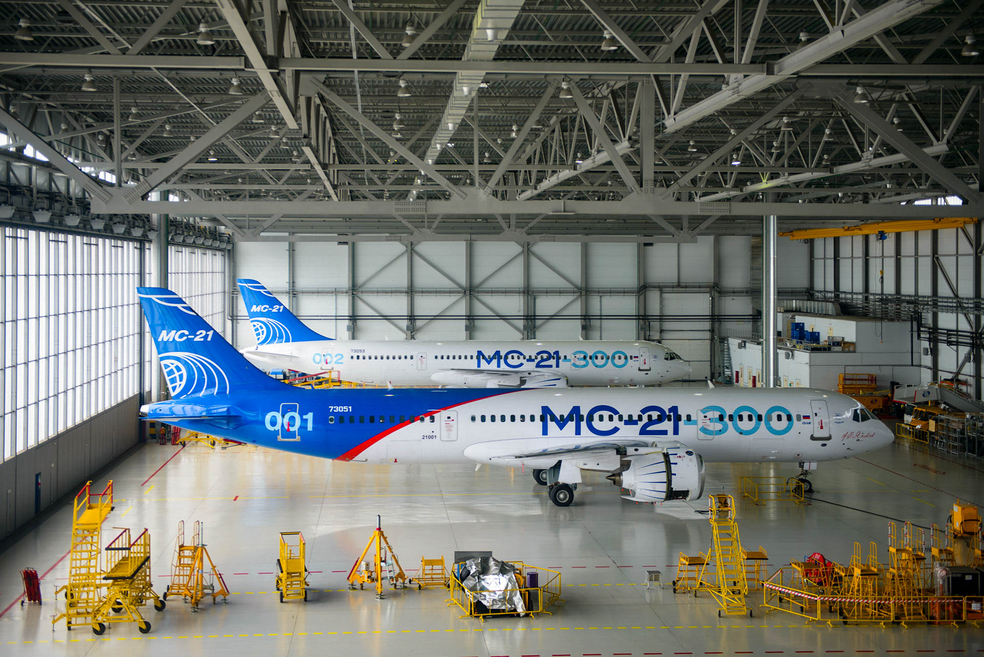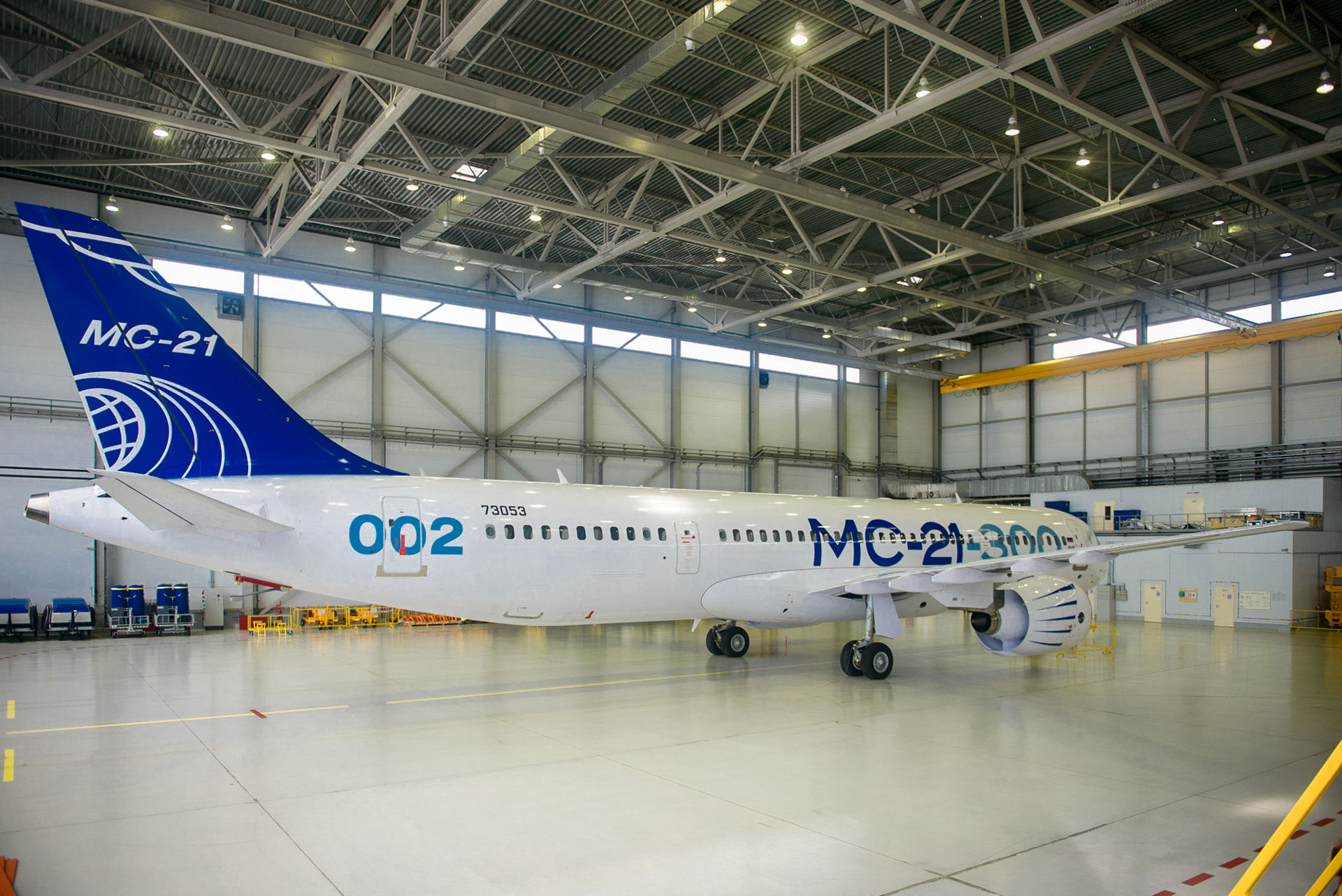 В ангаре размером 153 х 65 м могут одновременно разместиться три воздушных судна МС-21-300. Простую транспортировку самолетов обеспечивают огромные сдвижные светопрозрачные ворота шириной 50 и высотой 14,2 метров и идеально ровный пол с износостойким искробезопасным покрытием.
