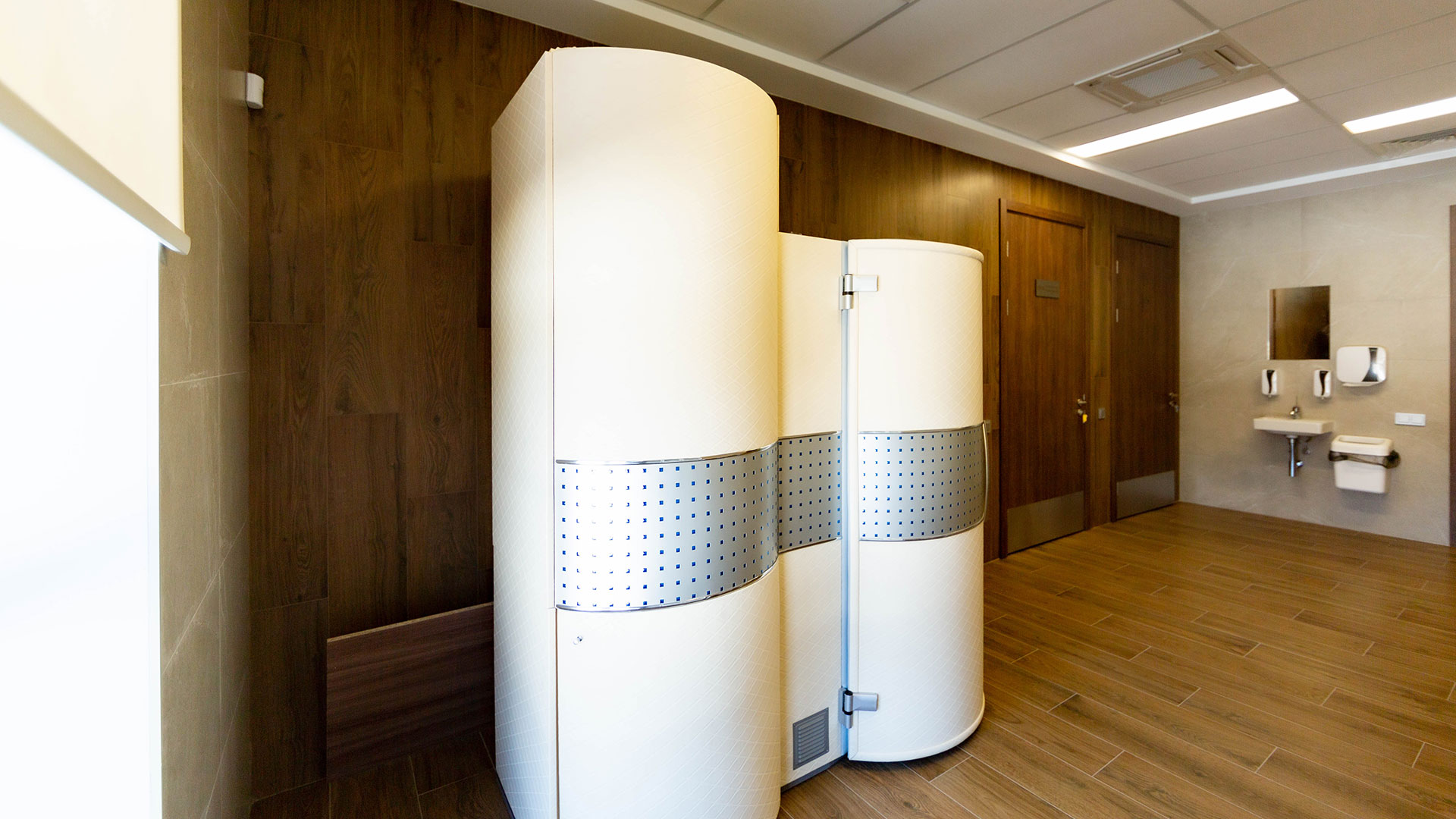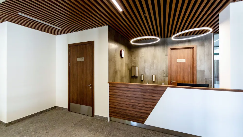 В блоке физиотерапии разместятся зал ЛФК с тренажерами, медицинские кабинеты для диагностики, массажа, физиотерапевтических процедур, электросветолечения и подводного вытяжения позвоночника.