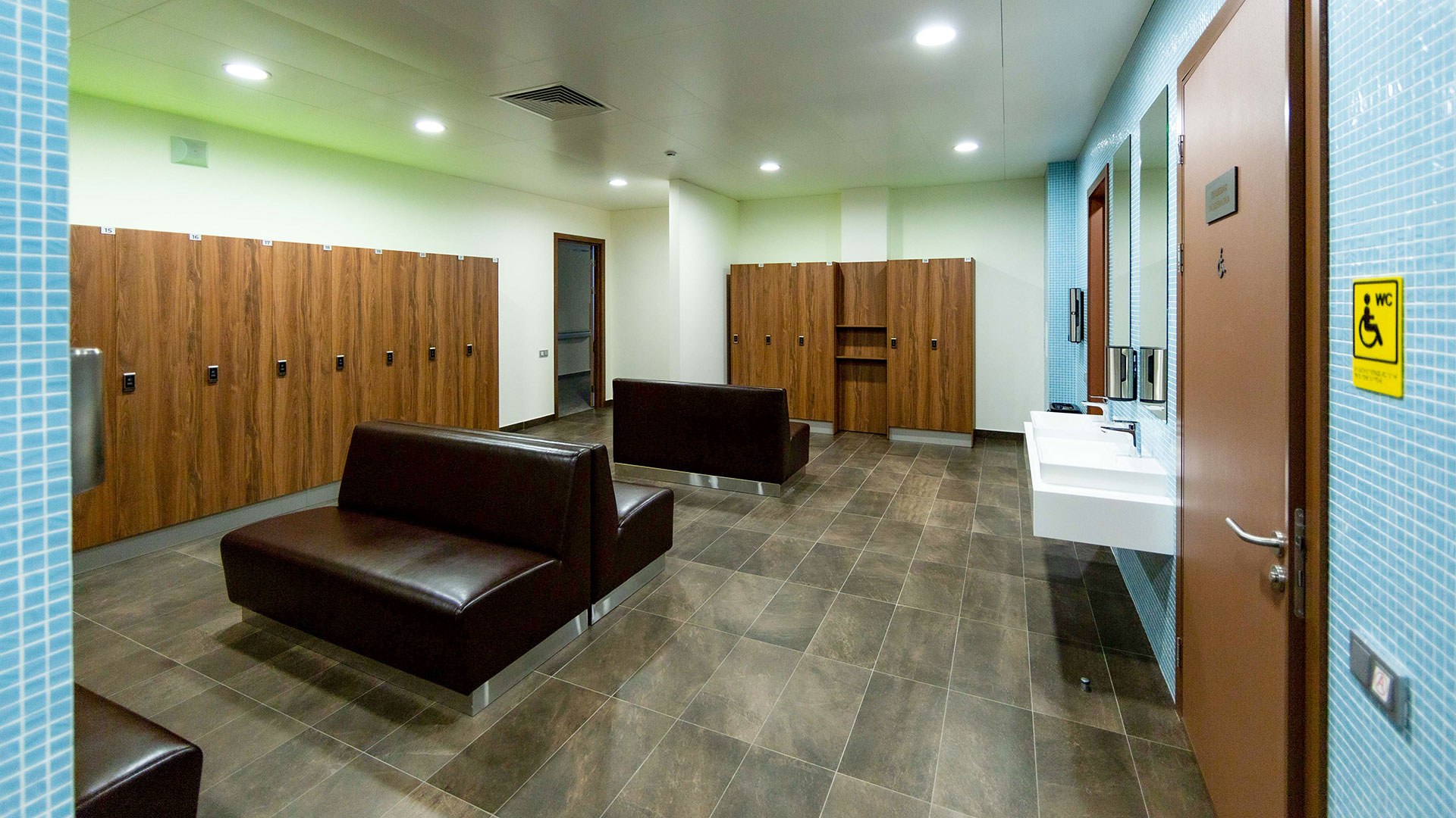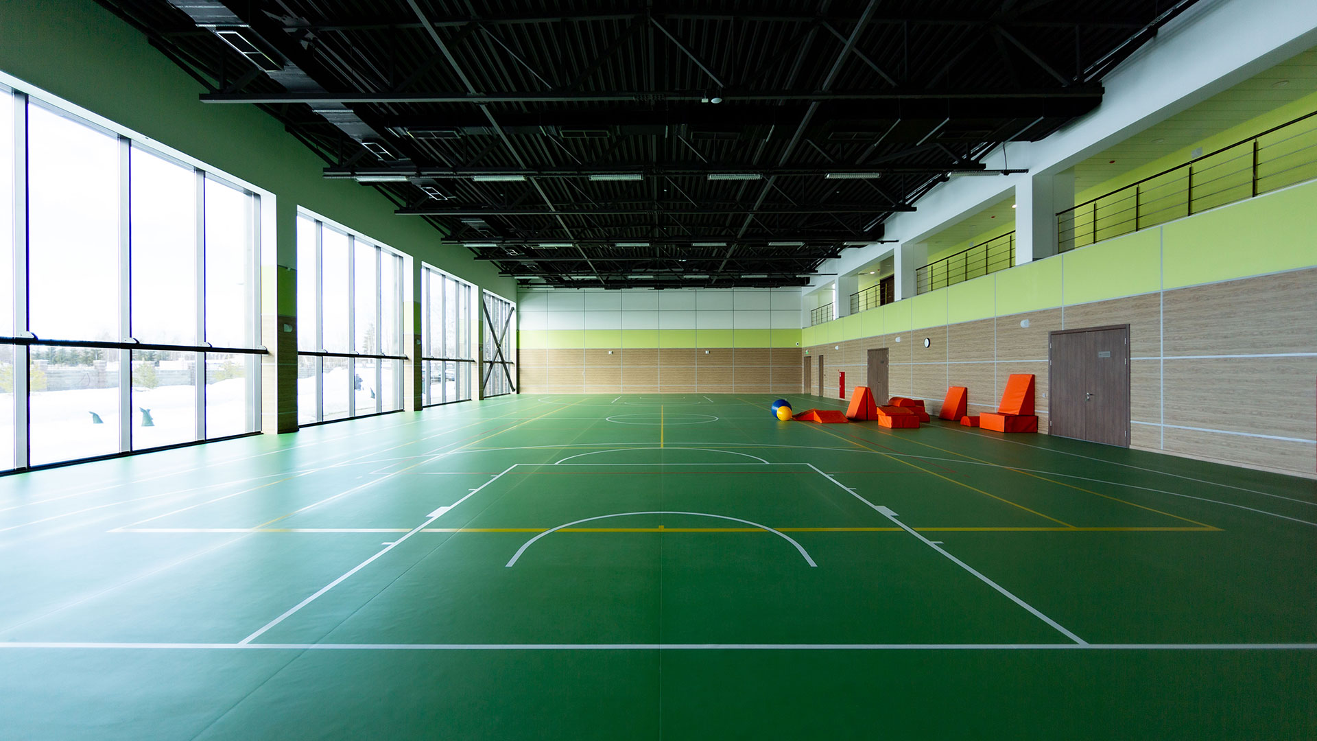 Здание реабилитационного центра – разноэтажное, размерами 67 х 104 м с подвалом и цокольным этажом, состоит из двух блоков. В первом блоке размещен 25 метровый бассейн и двухсветный спортивный зал площадью 3000 м2.