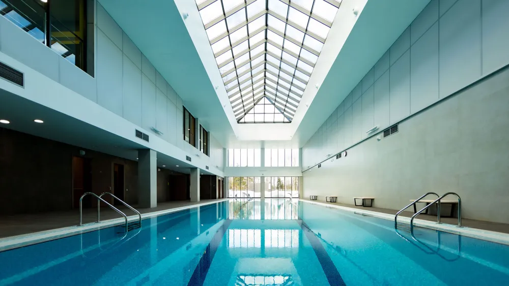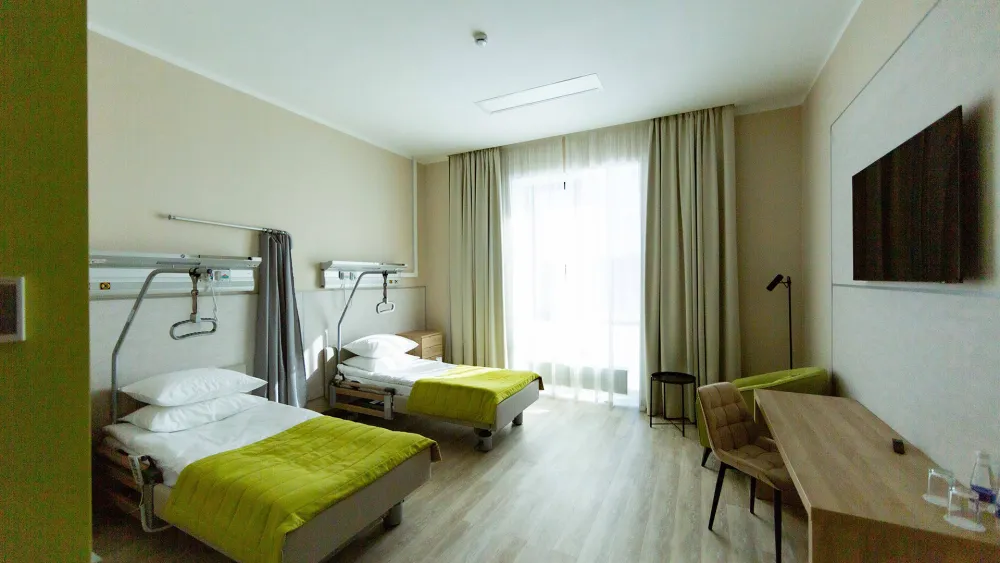 В палатном блоке разместятся досуговый центр, спортивный зал, столовая, сауна, тренажерные залы, врачебные и лечебные кабинеты, палаты пациентов, общей вместимостью 60 койко/мест, технические, административные и вспомогательные помещения.