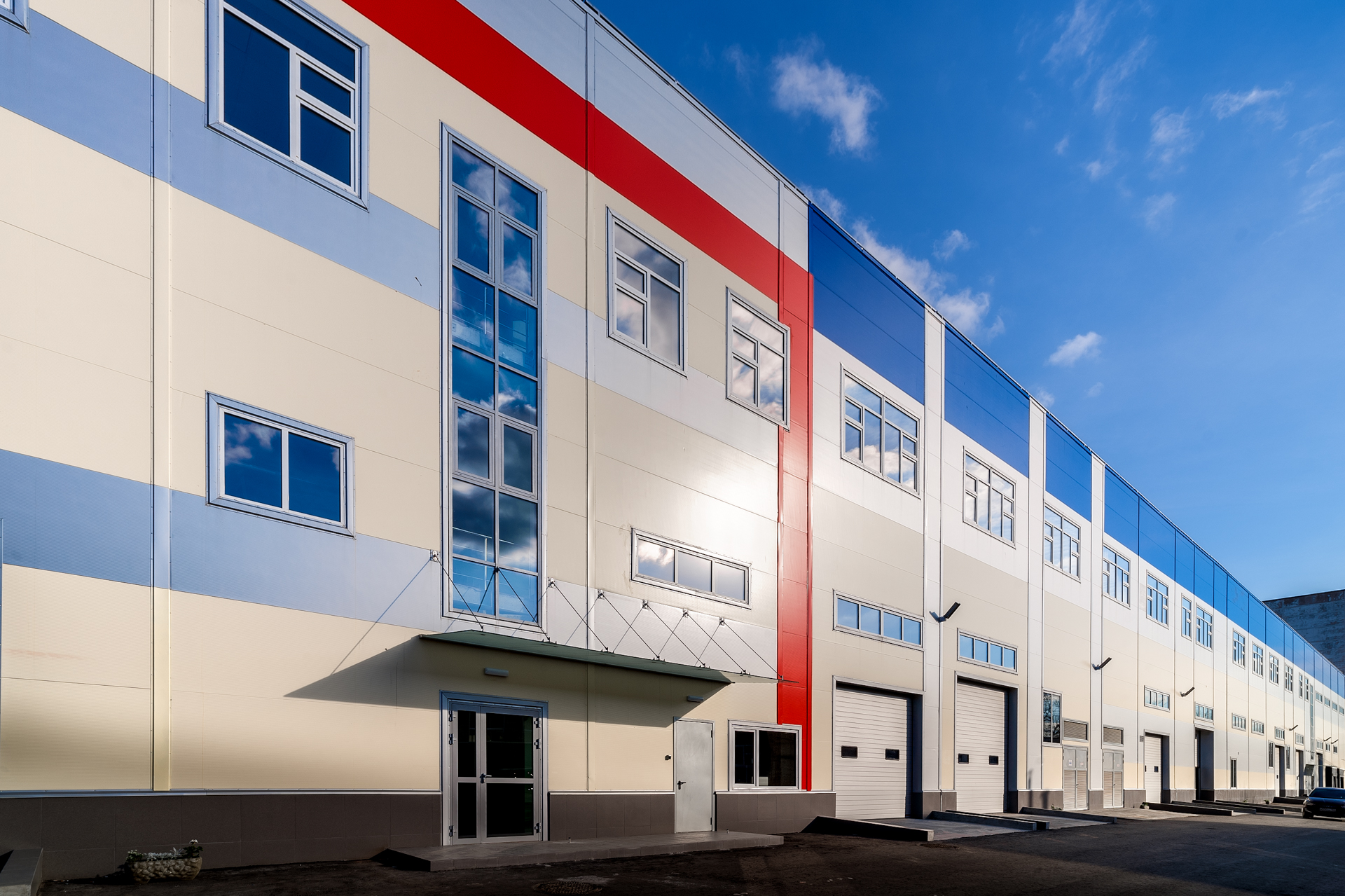 Для решения этой задачи компания ПСО-13 построила в 2019 году трёхэтажный многофункциональное здание класса Light Industrial с погрузочно-разгрузочными доками и отдельными входами, которое объединяющет под одной крышей все необходимые помещения.