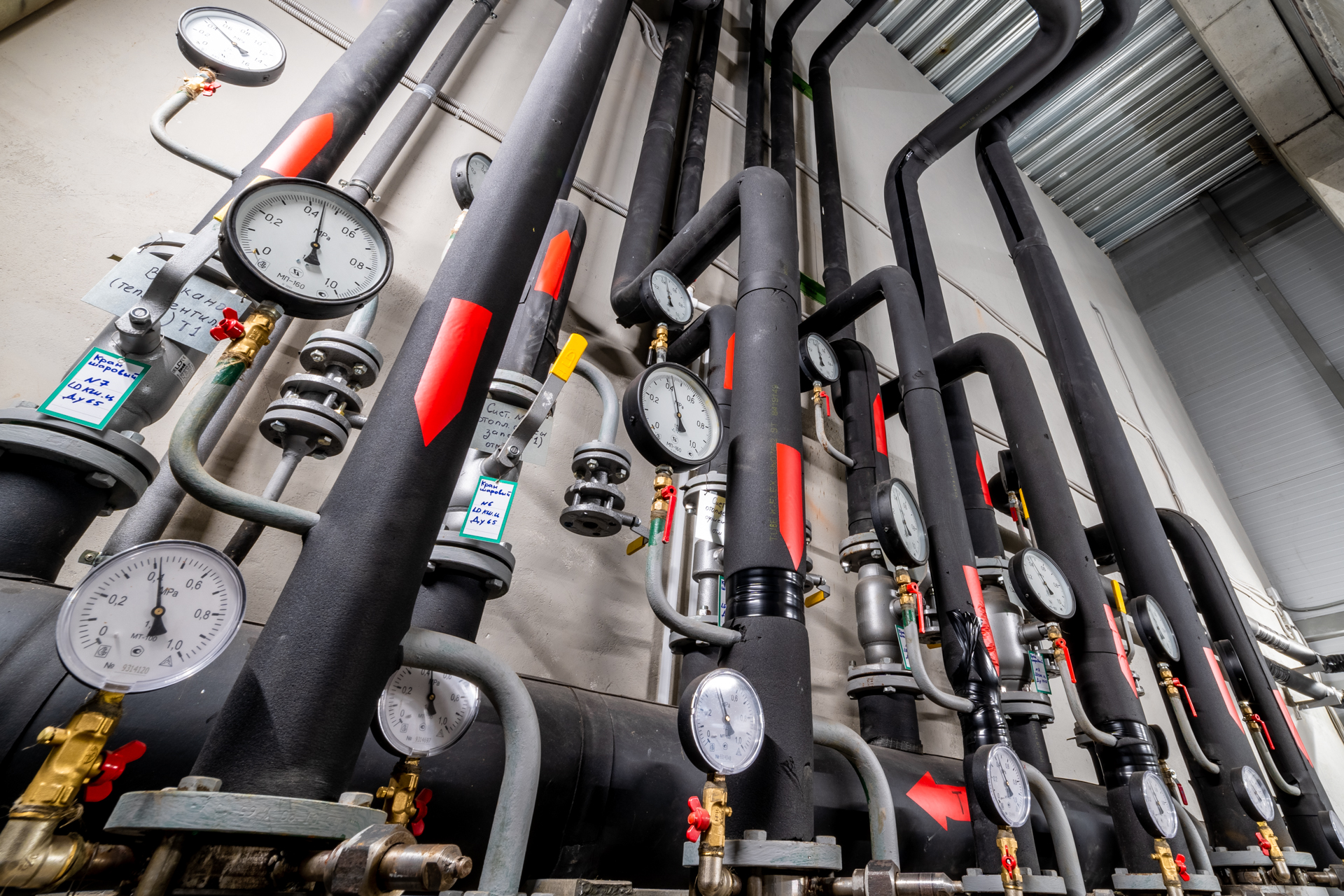 Здание оборудовано централизованным тепловым пунктом, мощными системами вентиляции с рекуперацией и системой отопления смешанного типа: водяные тепловентиляторы и воздушно-тепловые завесы в помещениях первого этажа, и водяные панельные радиаторы на втором и третьем этажах.