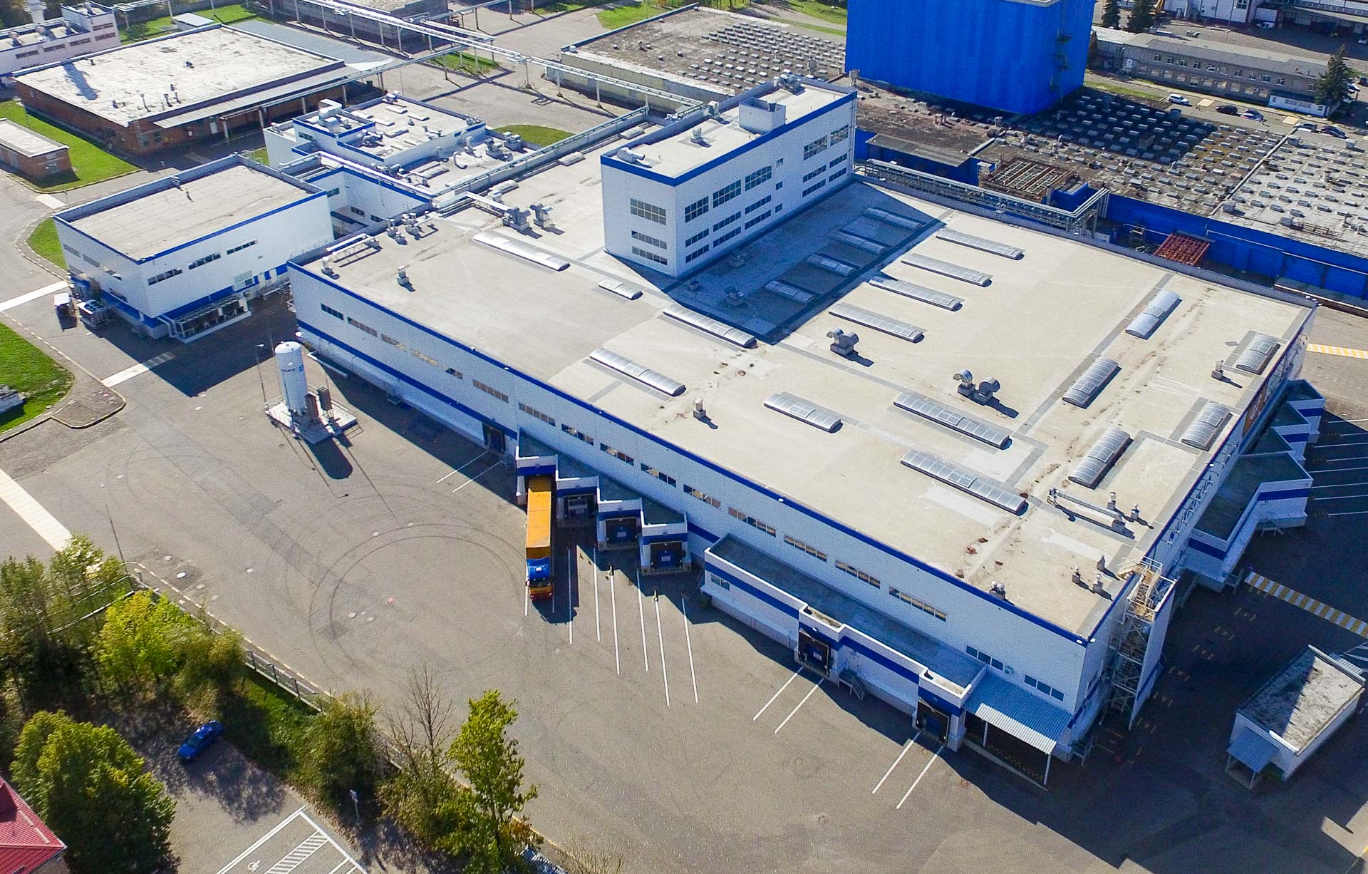 В главном здании нового производственно-складской комплекса размещены: склады для хранения премиксов, полуфабрикатов, упаковочных материалов и готовой продукции; отделения приготовления сахарной пудры, сухого смешивания и расфасовки; физико-химическая и микробиологическая лаборатории; офисы, переговорная, медпункт, гардеробы, административно-бытовые и технические помещения помещения.