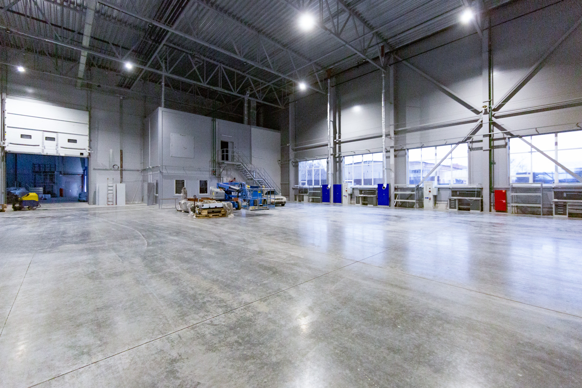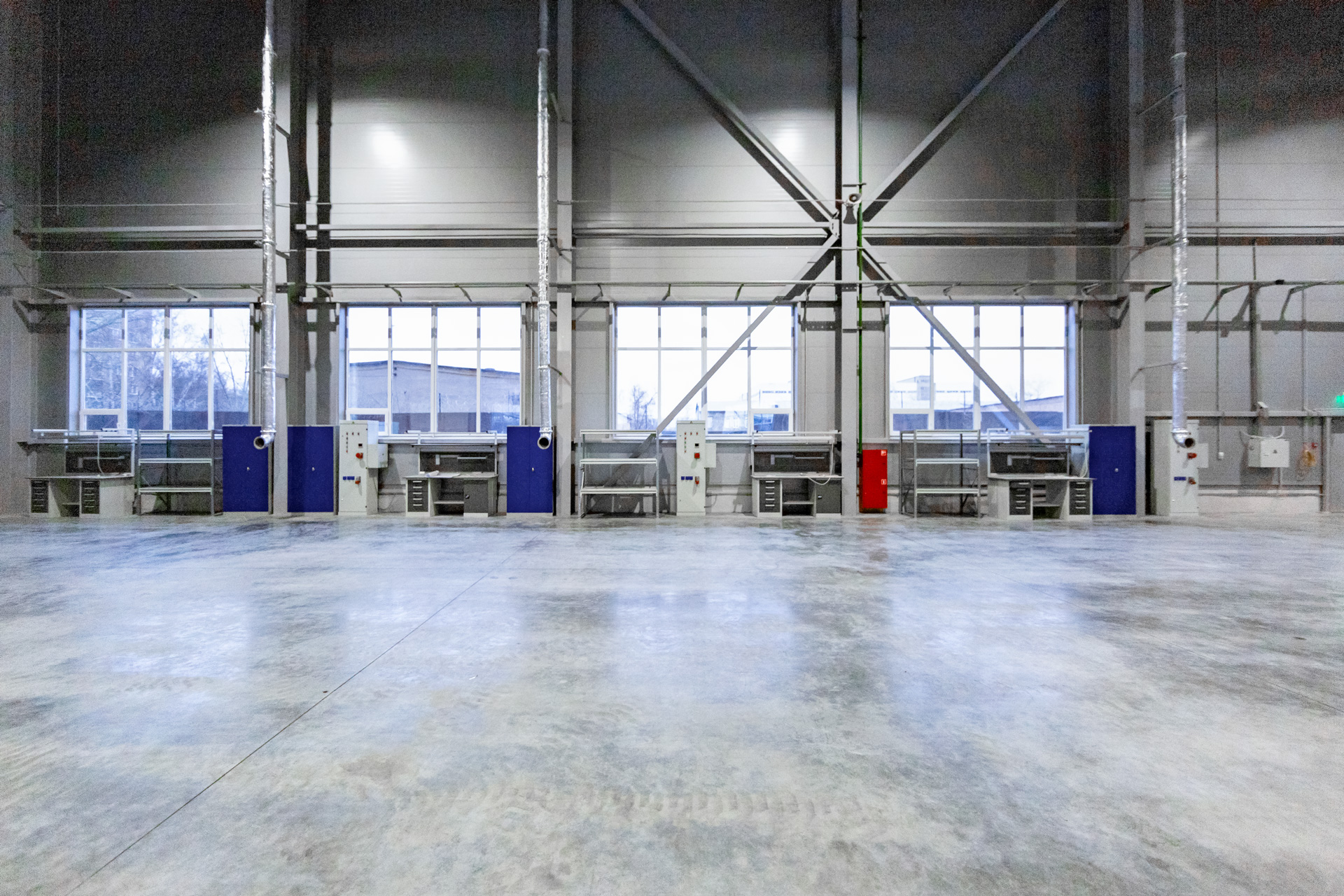 Конструкция здания и его огнестойкость будут соответствовать жестким требованиям (класс конструктивной опасности C0, степень огнестойкости III). Планировка предусматривает размещение двух цехов, заготовительного и малярного участков, вспомогательных складов и кладовых, офисных, бытовых и технических помещений. Здание будет оборудовано девятью транспортными доками, из которых семь - с увеличенными до 5 м створами ворот.