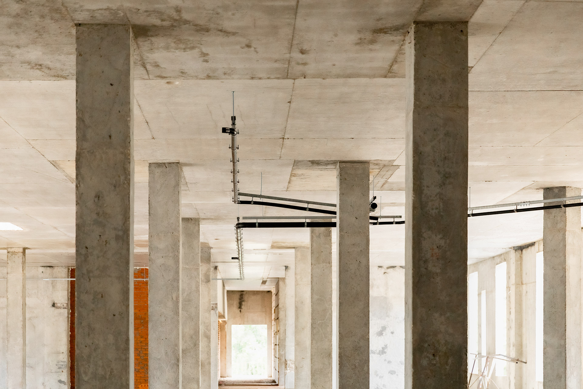 Реконструируемый административный корпус двухэтажный. Габариты здания 50м х 16м, высота 11,4м. В нем разместятся офисные помещения, конференц-зал, служебные, складские и технические помещения.