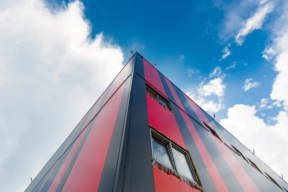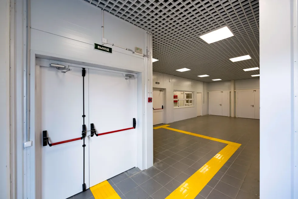 Для улучшения инсоляции в кровле установлены 54 световых фонаря. Из-за слабых грунтов в строительстве использован сборно-монолитный фундамент на свайном основании. Для повышения энергоэффективности применены сэндвич-панели толщиной 120 мм и цокольные трехслойные панели заводского изготовления толщиной 250 мм с теплоизоляцией из экструзионного пенополистирола.