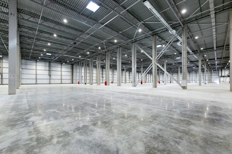 - Бетонный пол с антипылевым упрочненным покрытием с нагрузкой 8 т/кв.м.