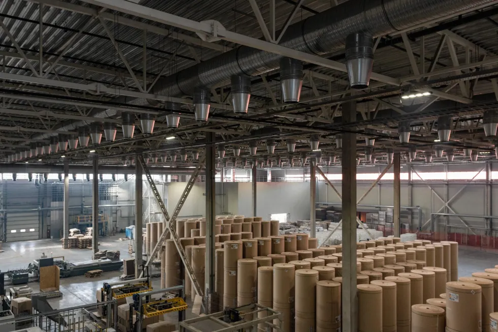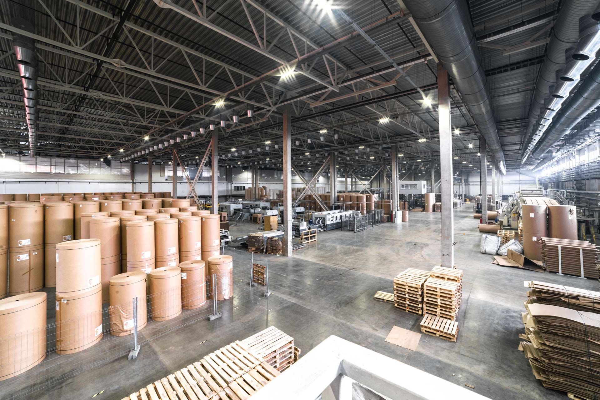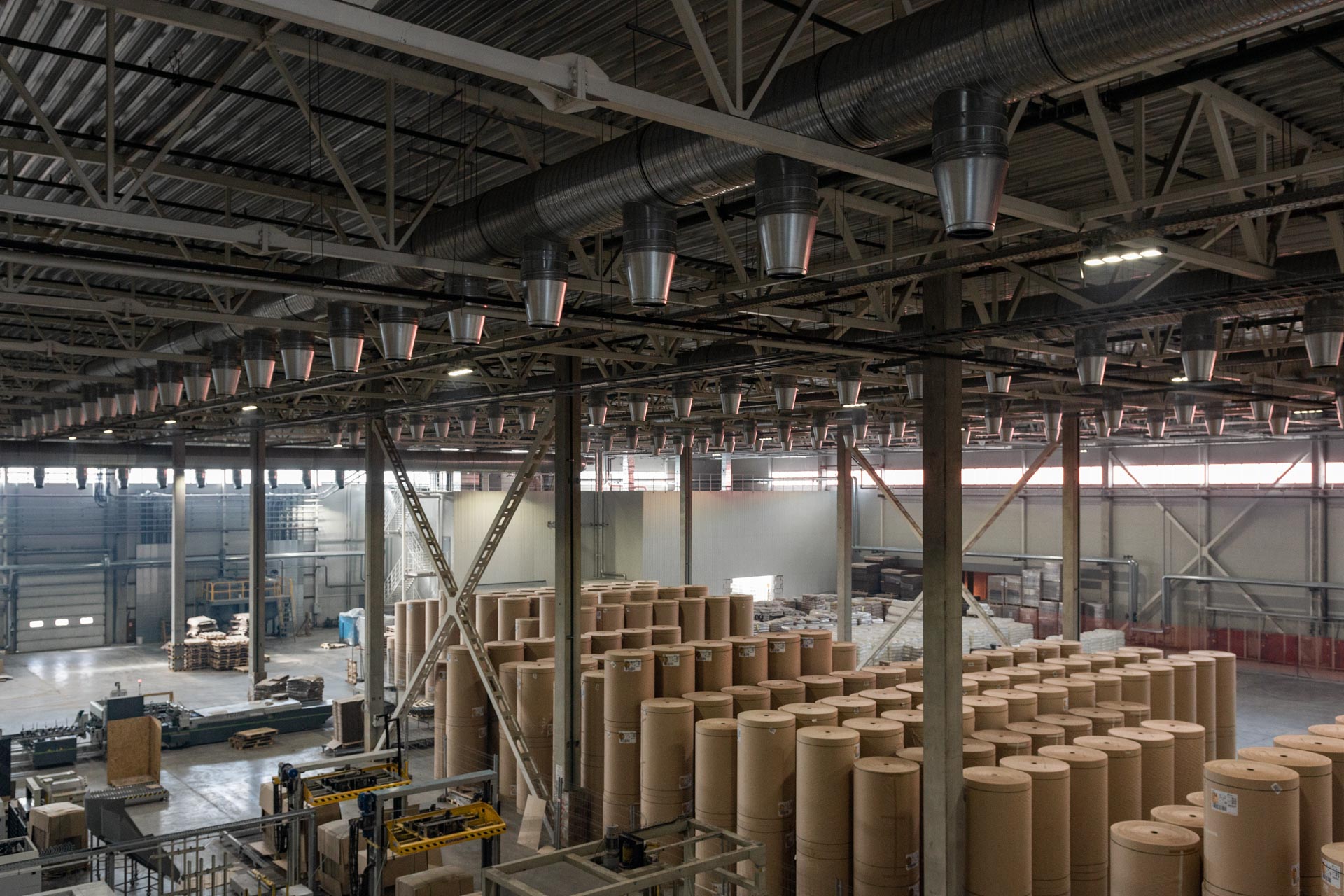 Общая площадь завода превышает 30 000 м². Производственная мощность составляет 144 млн м² гофрокартона в год.