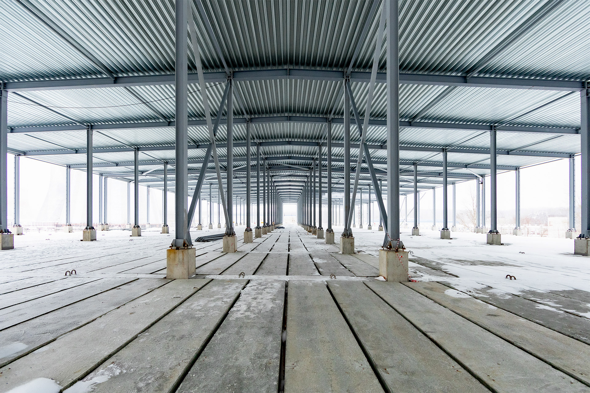 Корпус А двухэтажный, со встроенной антресолью АБК. Габариты в осях 99,0х64,5 м. Высота 22,67 м. Площадь 14 184,0 кв.м. Корпус Б также двухэтажный. Габариты в осях 170,4х54,0 м. Высота 23,10 м. Площадь 17992,0 кв.м. Несущие конструкции зданий железобетонные. Высокая энергоэффективность зданий будет обеспечена применением сэндвич-панелей толщиной 150 мм с заполнением из минеральной ваты.