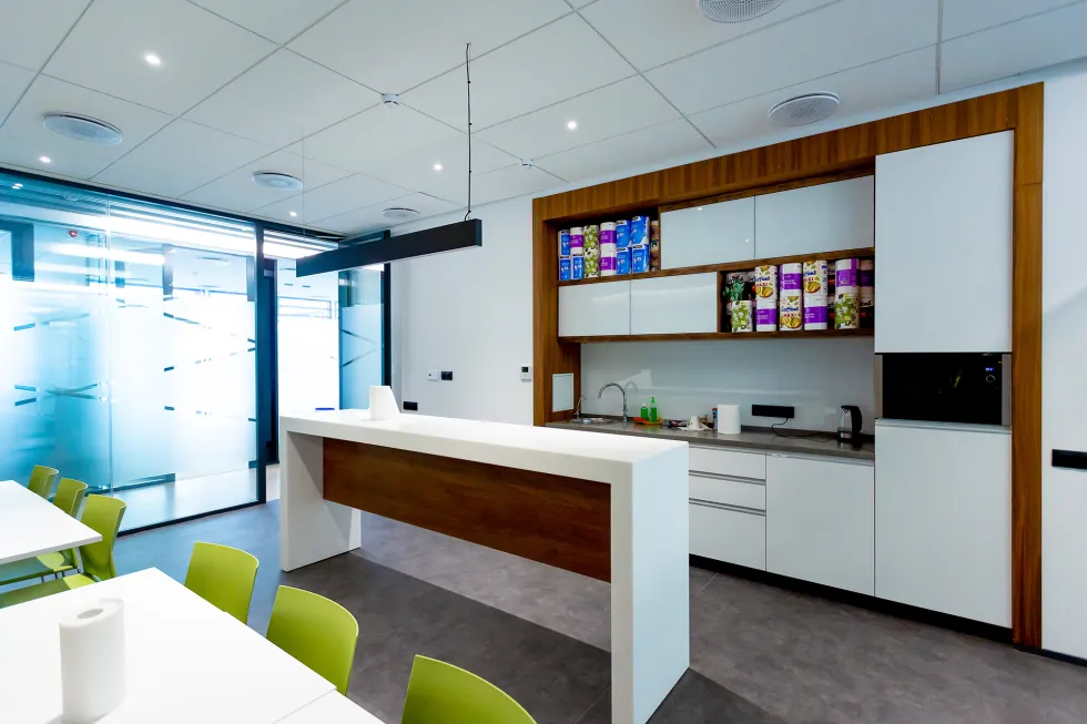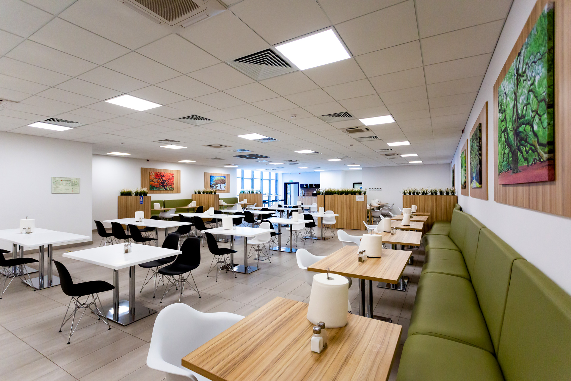 • Административно-бытовой блок, с входной зоной, столовой с обеденным залом, лабораторией службы качества, офисными и представительскими помещениями, конференц-залами, медпунктом, гардеробами и туалетами.